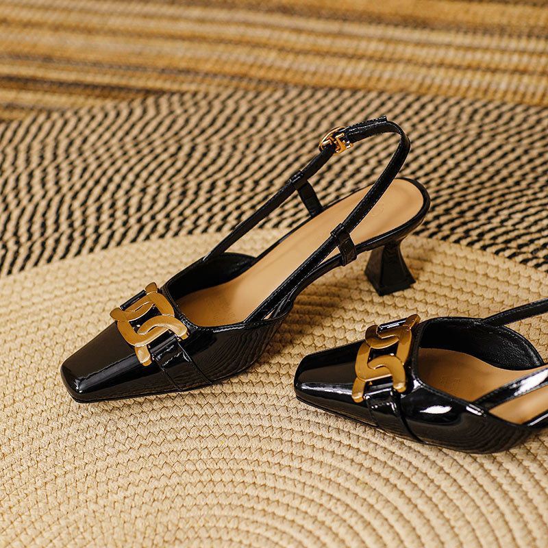 | nameOriginal | Square Toe Rear Empty Single-layer Shoes Mid-heel Shoes with Skirt One-line Buckle Thick Heel High-heeled Shoes Retro Elegant Toe Sandals |