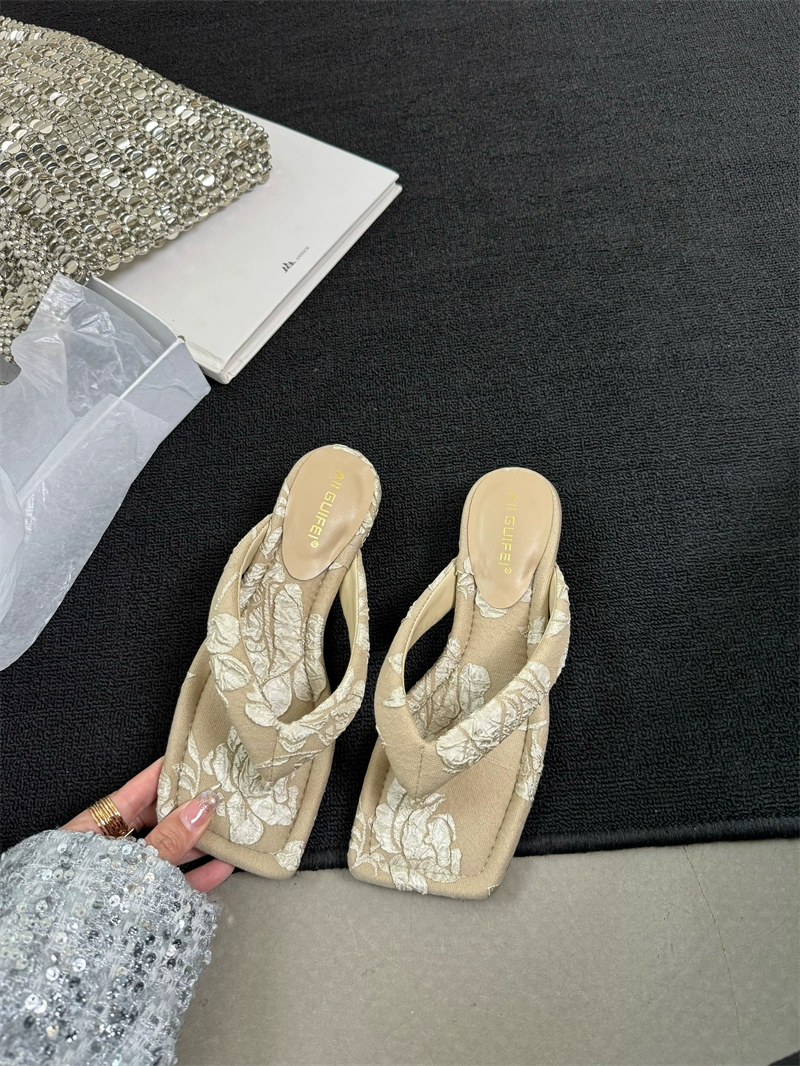 | nameOriginal | Square toe summer French flip-flops with thick heels |