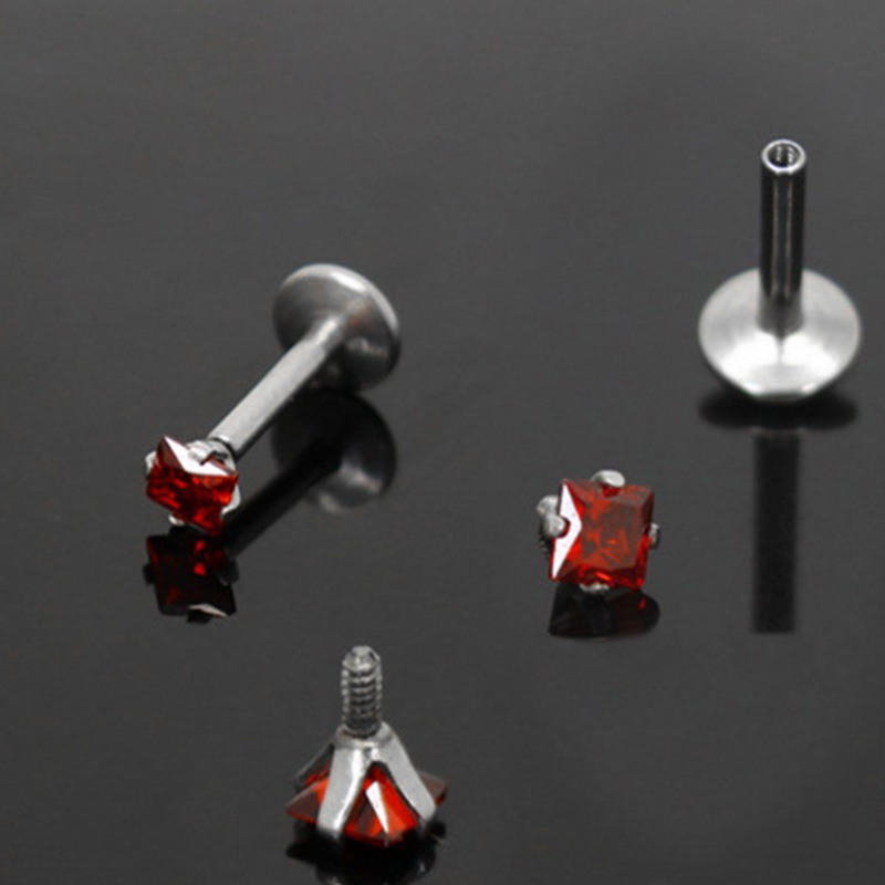 | nameOriginal | Square zircon head stainless steel thread lip nail accessories 3-5mm 0.9-1.0mm inner tooth with 1.2mm base |