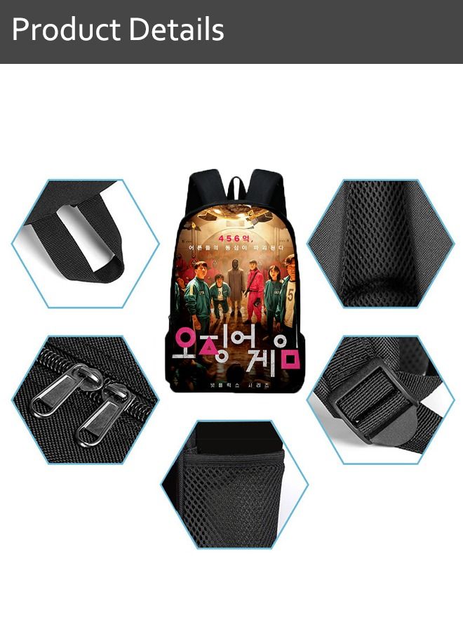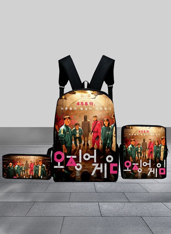 3-Piece Squid Game Digital Printing Backpack Set Including Backpack Messenger Bag Wallet Multi-purpose Waterproof Wear-Resistant Large Capacity for Boys and Girls