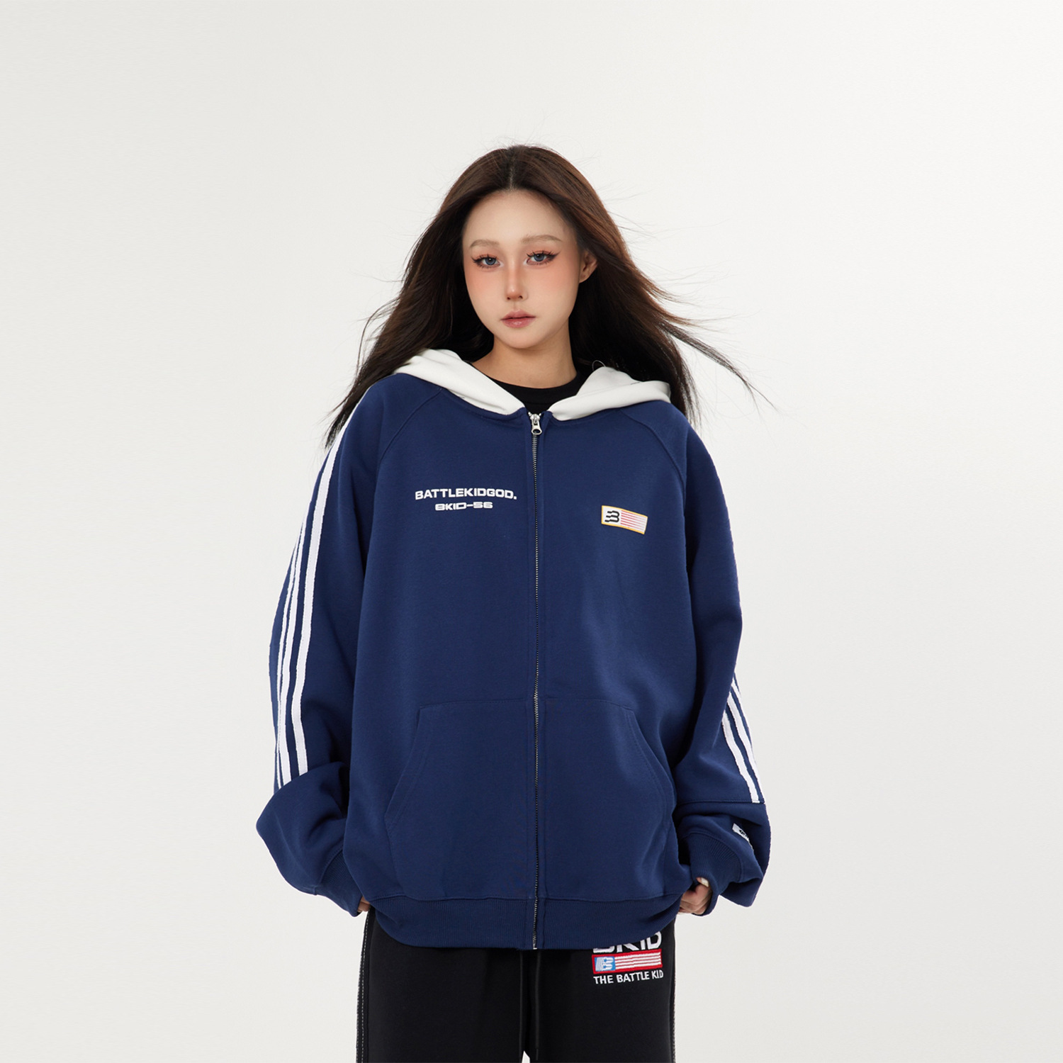| nameOriginal | SREK national fashion American striped flag cardigan hooded sweater women's spring loose couple casual hoodie coat |