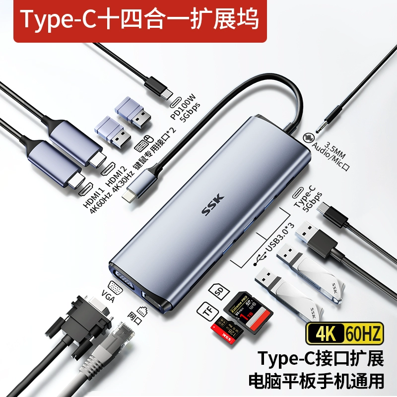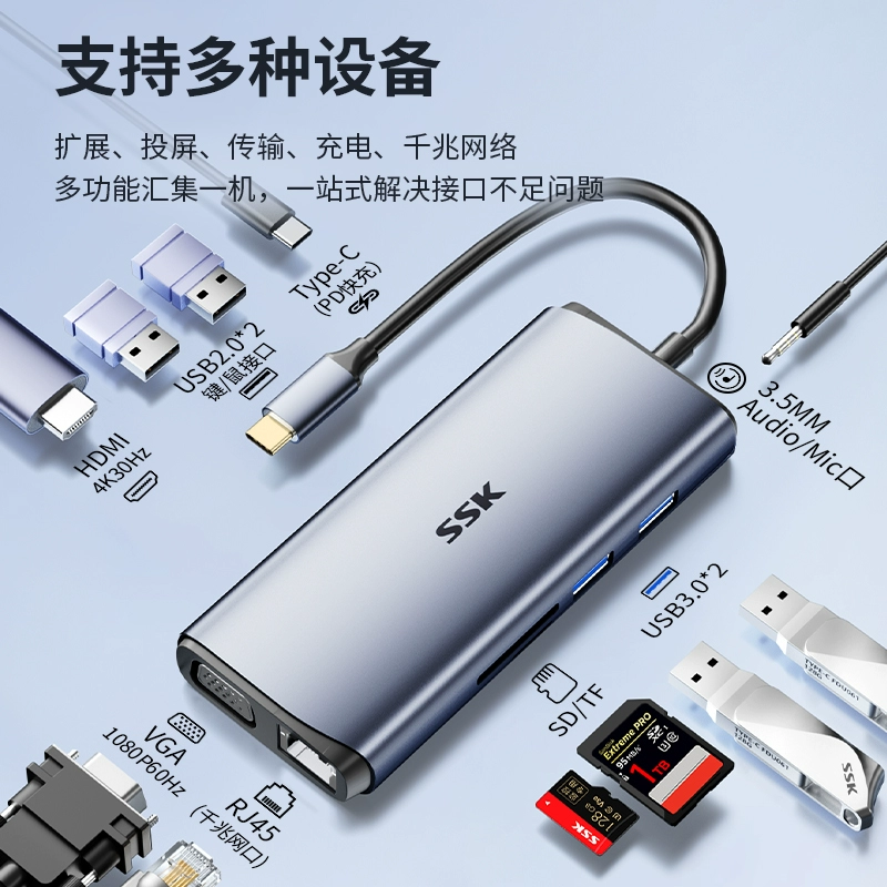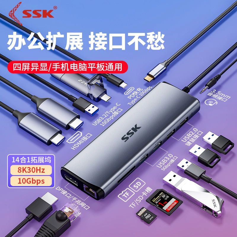 | nameOriginal | SSK Biaowang typec docking station Thunderbolt 3usb docking station notebook Gigabit network port splitter hub docking station card hdmi8k high-definition display external computer conversion mobile phone iPad |