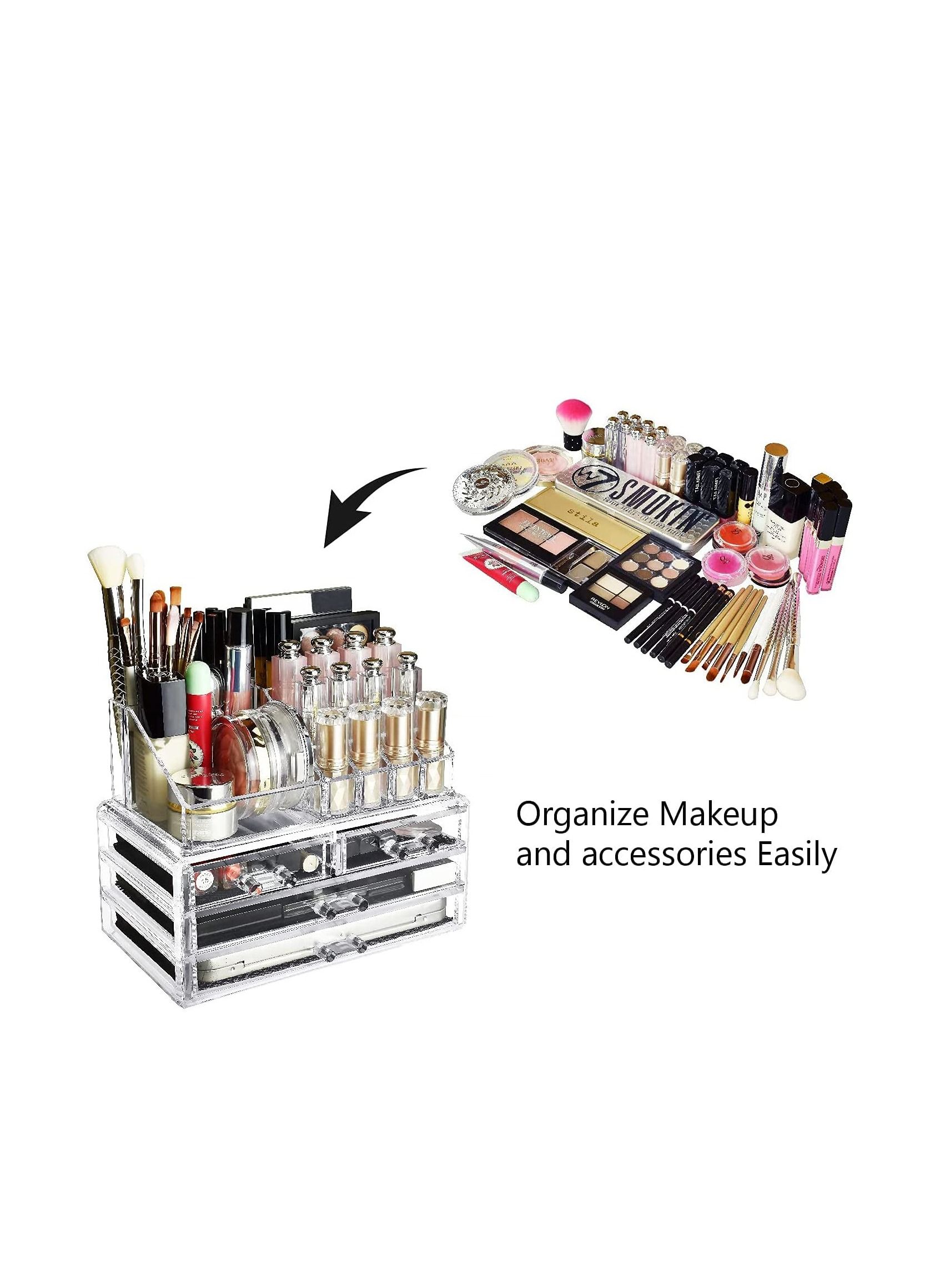 The Acrylic Cosmetic Make Up Storage Drawers Organizer is the perfect solution for keeping your vanity and bathroom organized. With its stackable design and 4 spacious drawers, this organizer provides ample space for all your cosmetics and beauty products. Made from high-quality acrylic material, it is durable and easy to clean. The clear design allows you to easily see and access your items, while the compact size makes it ideal for small spaces. Whether you’re a makeup enthusiast or just looking for a way to keep your bathroom clutter-free, this organizer is a must-have.