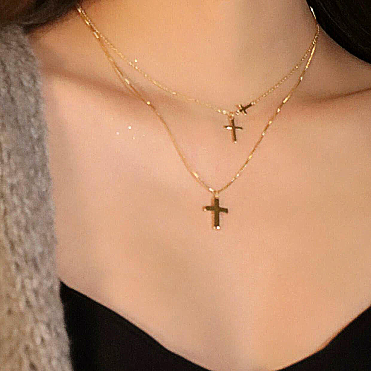 Stacked Cross Multi-layer Necklace for Women