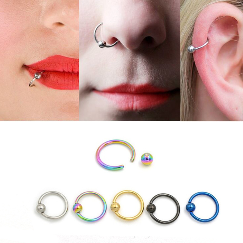 Stainless steel BCR multi-purpose ring body piercing jewelry ball universal ring foreign trade card ball ring nose ring eyebrow ring breast ring
