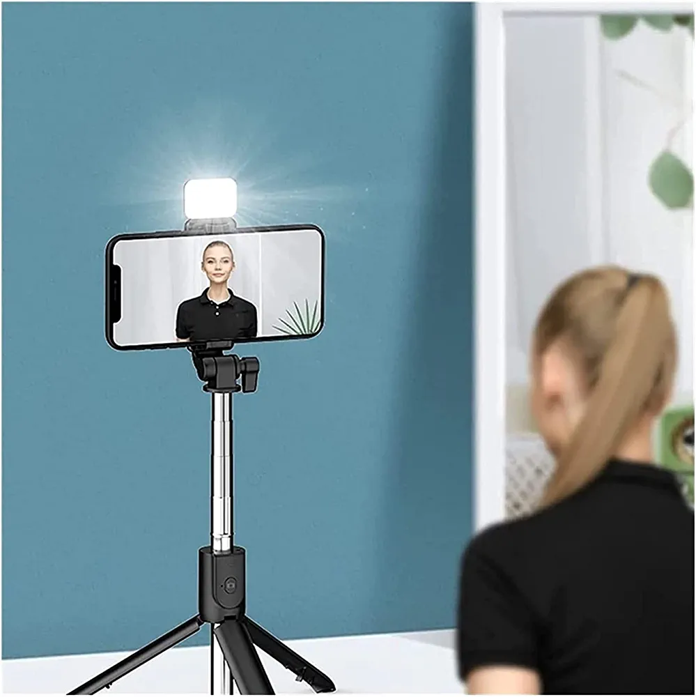 Introducing our selfie stick, made of durable ABS and stainless steel materials, weighing only 100g. It comes in a sleek black color and measures 185mm in length, 40mm in width, and 47mm in thickness. The telescopic rod has 6 sections and can extend up to 790mm, perfect for capturing wide-angle shots. Equipped with 20 LED lamp beads, providing cold light for your photos and videos. Please note that the actual product color may differ from the images due to monitor settings, and there may be slight variations in size due to manual measurement. We value your feedback and suggestions, as they inspire us to improve our products and services. Whether you’re watching the sunrise or sunset, chasing after your loved ones, or capturing the ebb and flow of the tide, our selfie stick is the perfect companion for your adventures. We wish you a happy and fulfilling day!