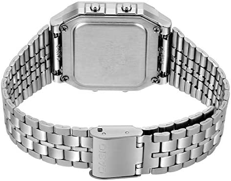 Crafted from high-quality materials, this Casio analog watch is built to last. The stainless steel bracelet adds a touch of elegance to the timepiece and fits comfortably on your wrist. Its corrosion-resistant properties ensure that it can withstand daily wear and tear. The fold-over clasp closure ensures a secure fit, while the resin glass protects the dial from scratches, keeping it looking new for longer.