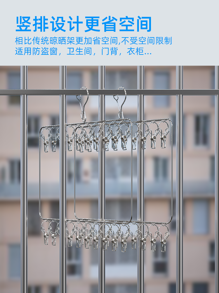 | nameOriginal | Stainless steel clothes hanger, socks, underwear, multi-clip, baby balcony, windproof, bold storage, space-saving drying artifact |