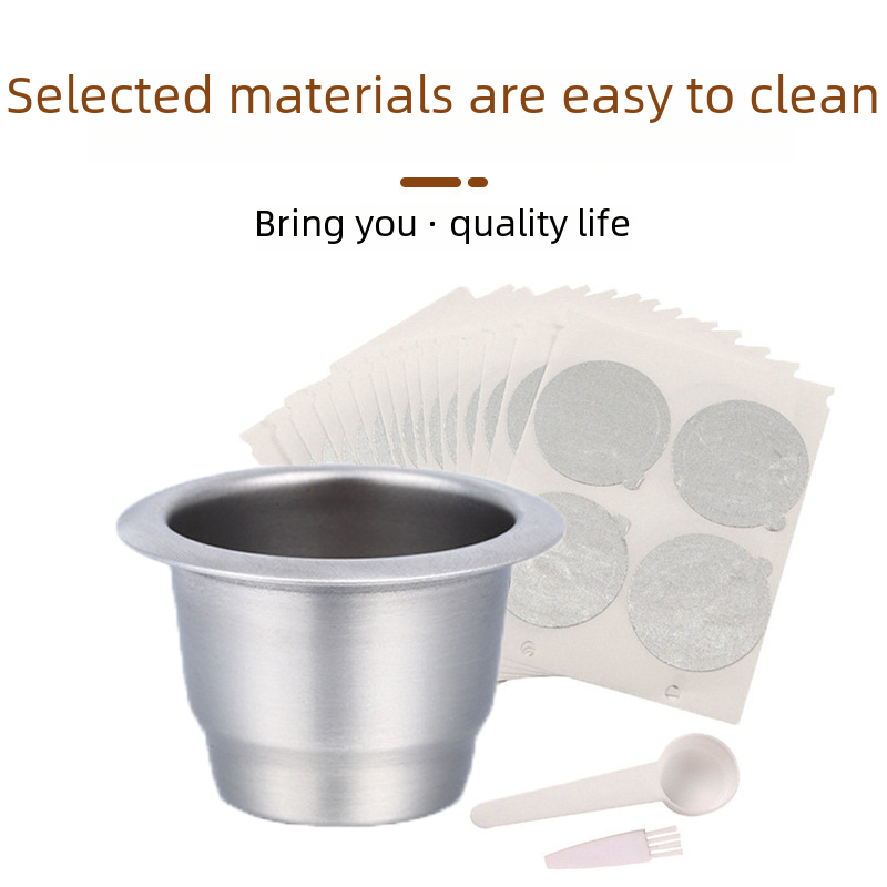| nameOriginal | Stainless Steel Coffee Capsule Shell Aluminum Foil Compatible with Nestle nespres Reusable Coffee Cup Filter |