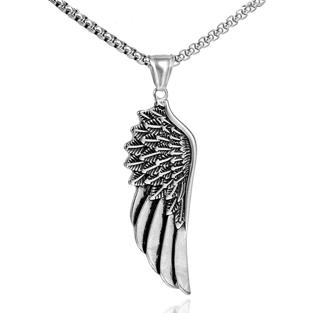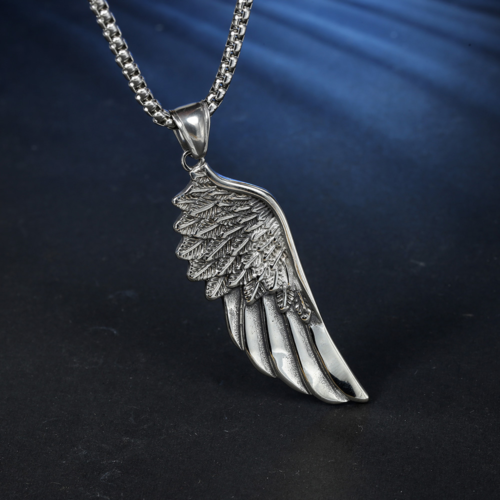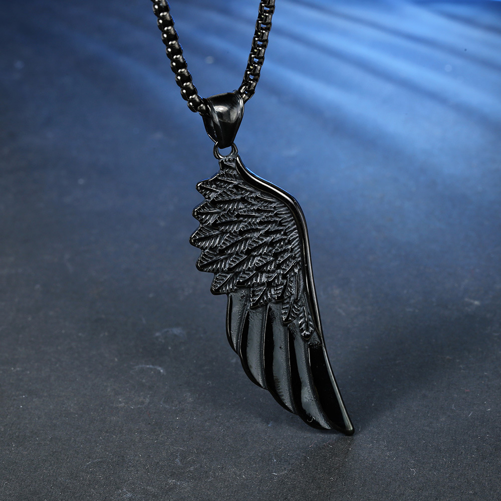 | nameOriginal | Stainless steel Feather Men's necklace angel wings titanium steel pendant necklace foreign trade jewelry wholesale JD056 |