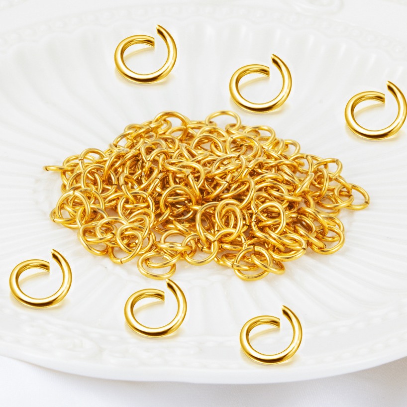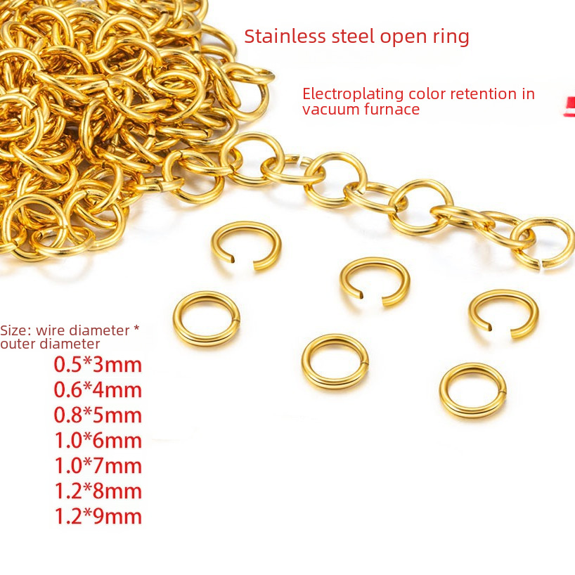 Stainless steel furnace vacuum plating Golden open ring single ring connecting ring 18K gold color protection DIY jewelry accessories