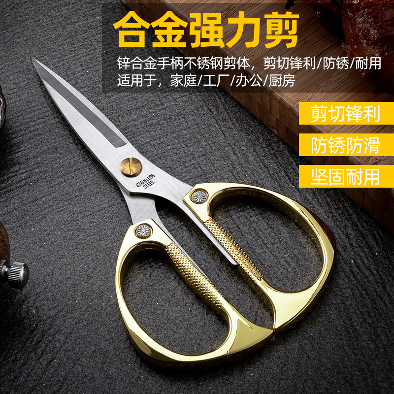 Stainless Steel Gold Plated Household Tailor Scissors Alloy Strong Kitchen Chicken Bone Scissors Garden Cutting Dragon and Phoenix Scissors Gift Scissors