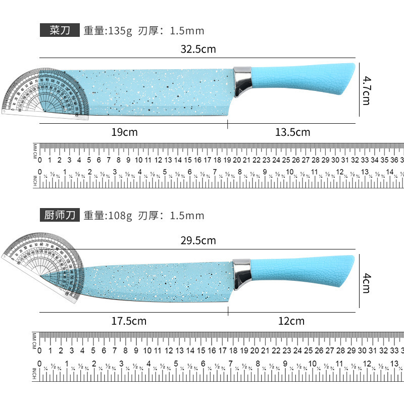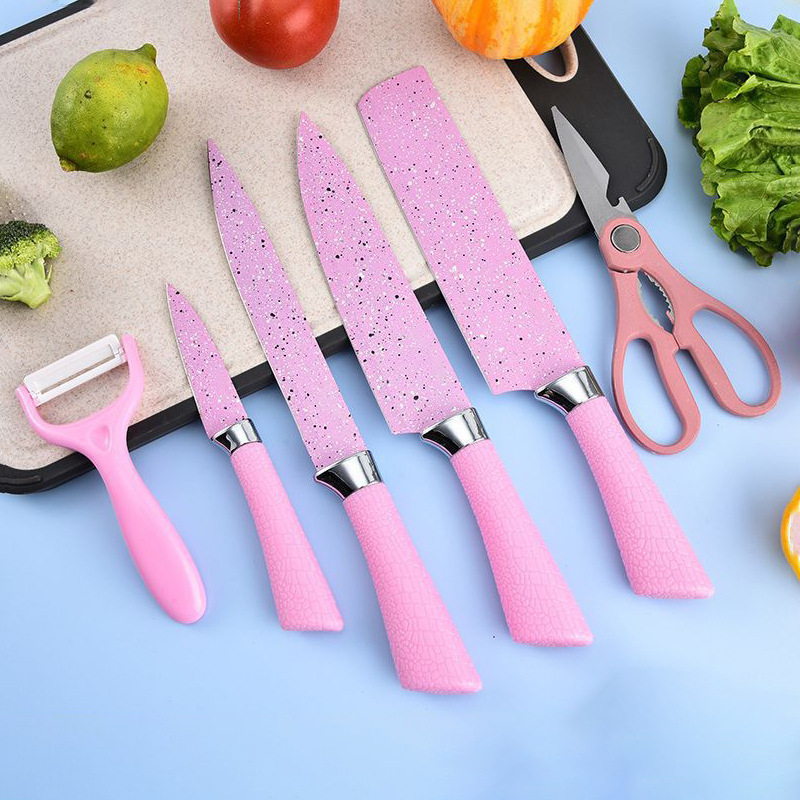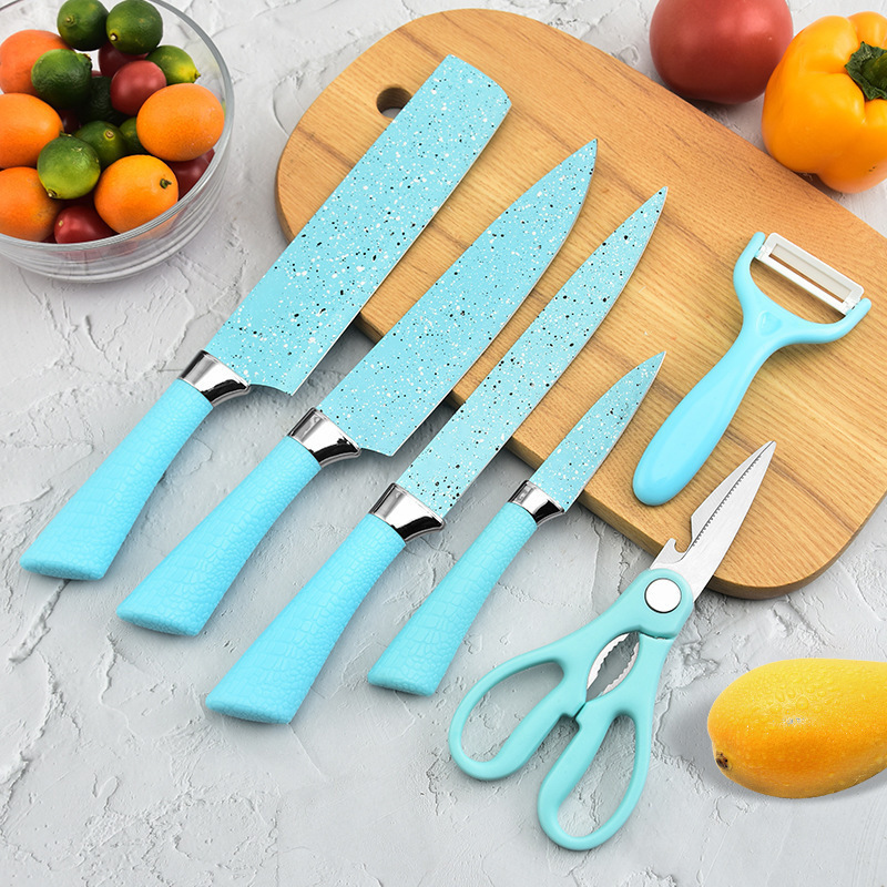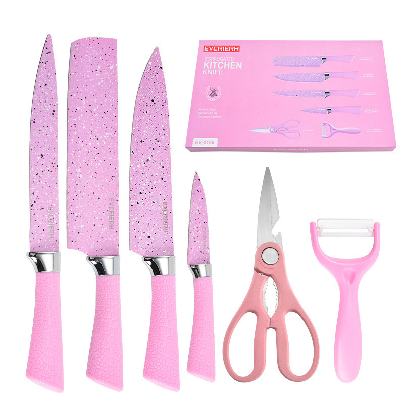 Stainless steel kitchen color spray point wavy horseshoe handle set knife six-piece non-stick kitchen knife fruit knife suit