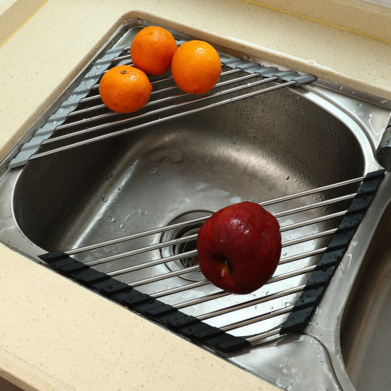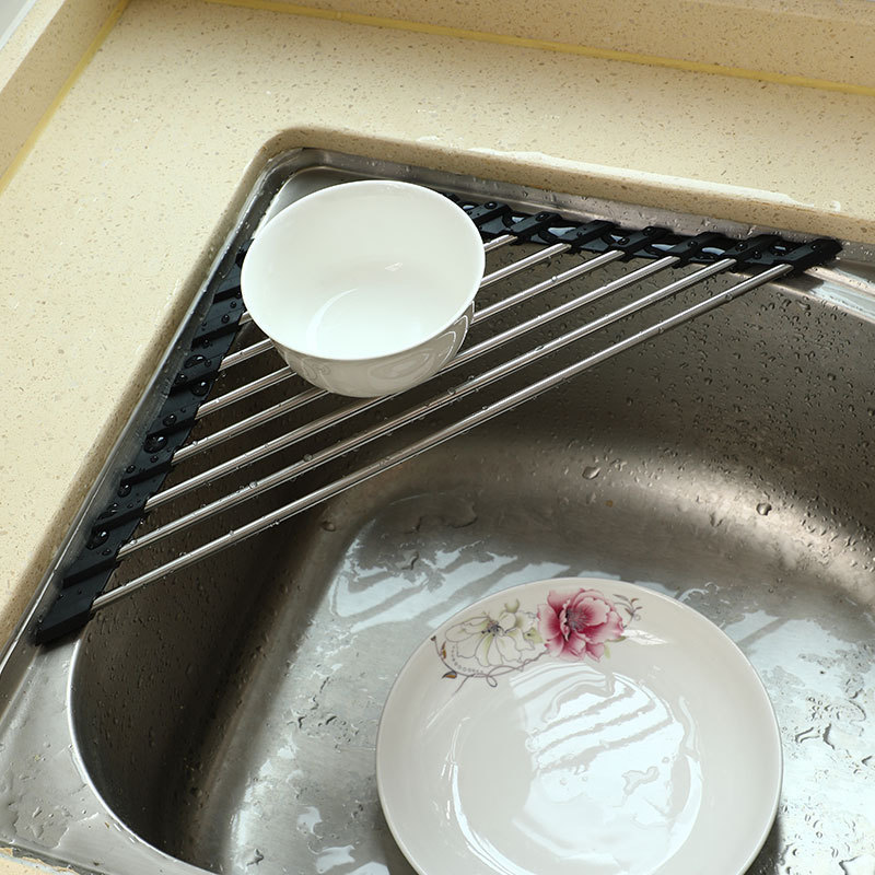 Stainless steel kitchen fruit and vegetable sink draining rack sink dish rack non-slip folding Dish draining tripod
