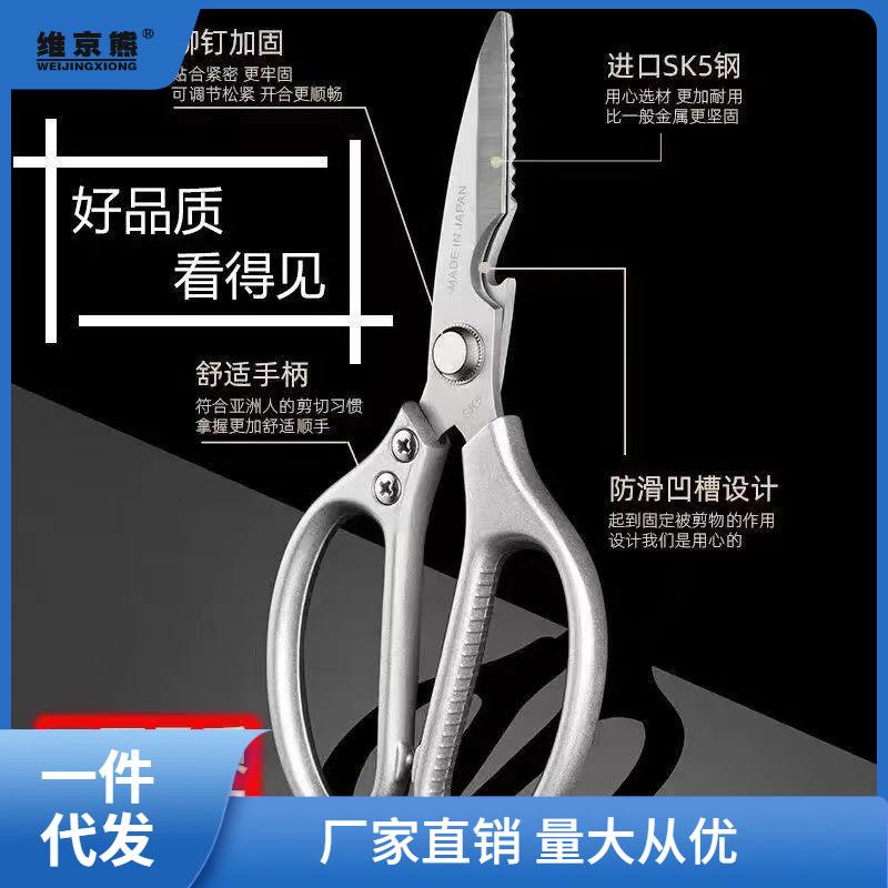 | nameOriginal | Stainless steel kitchen scissors all-steel chicken bone scissors multi-functional strong industrial tailor household food scissors large size |