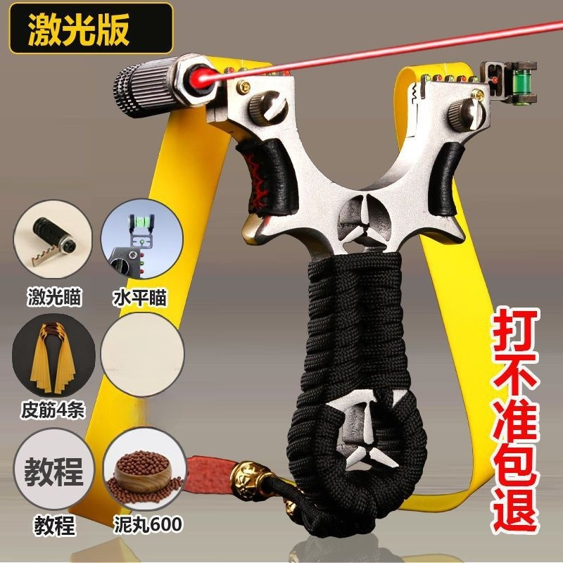 Stainless Steel Laser Slingshot Violence Outdoor Adult Competitive Flat Leather Bow Professional Toy Laser Infrared High