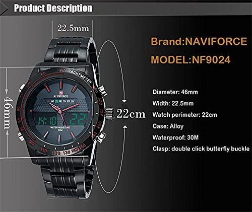 The Naviforce Dress Watch for Men LED Stainless Steel – 34433 is a sleek and stylish timepiece that is perfect for any occasion. The watch features a durable stainless steel band and case, which is both scratch-resistant and water-resistant, making it ideal for everyday wear. The LED display provides clear and easy-to-read time, date, and stopwatch functions, while the sleek black dial and silver-tone accents add a touch of sophistication to the design. Whether you’re dressing up for a formal event or just running errands around town, the Naviforce Dress Watch for Men LED Stainless Steel – 34433 is the perfect accessory to complete your look.