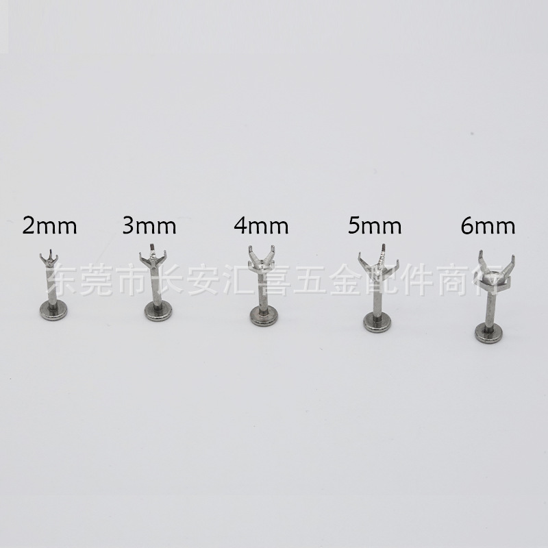 Stainless steel lip nail four-claw round zircon ear nail holder cross-border puncture jewelry accessories internal thread claw drill air holder