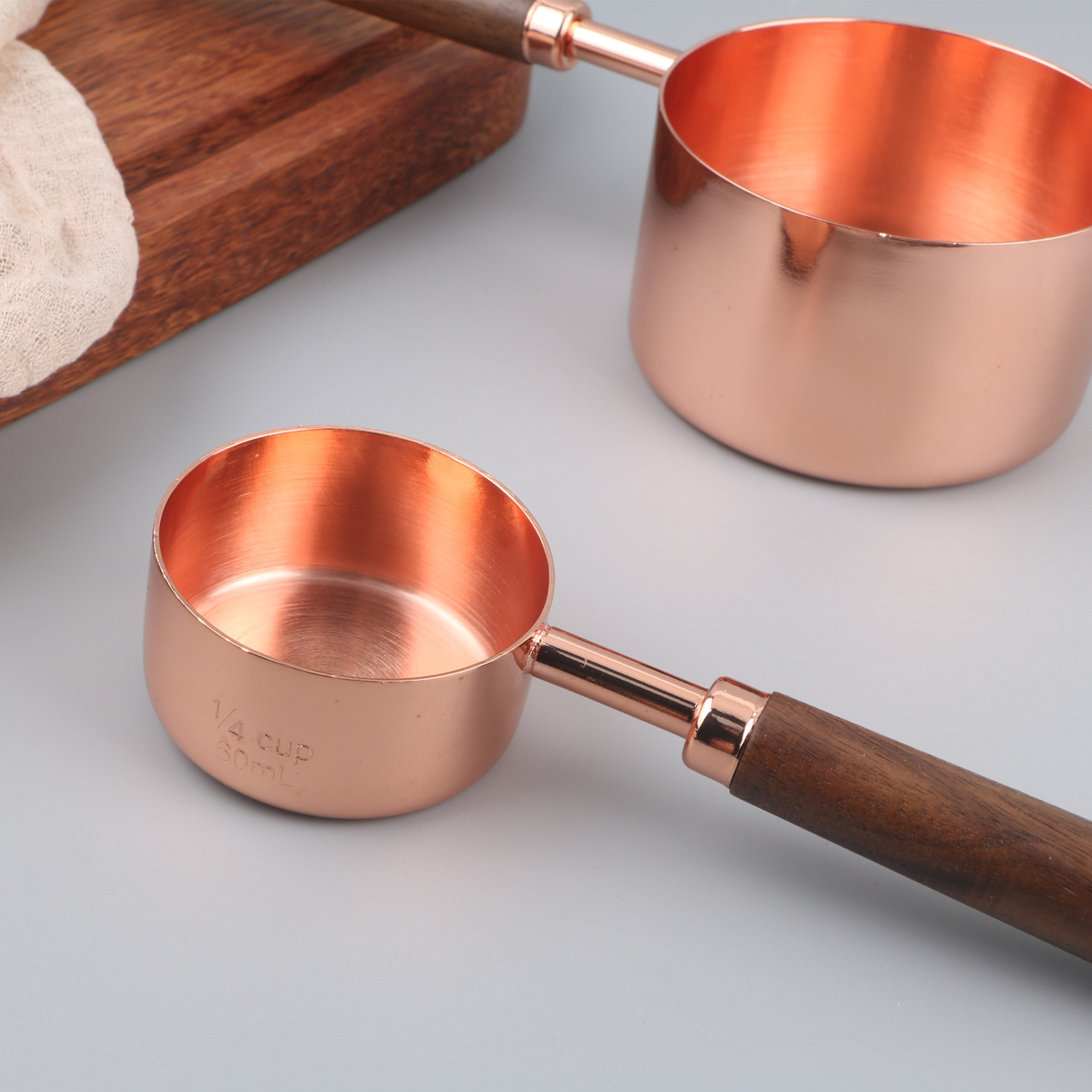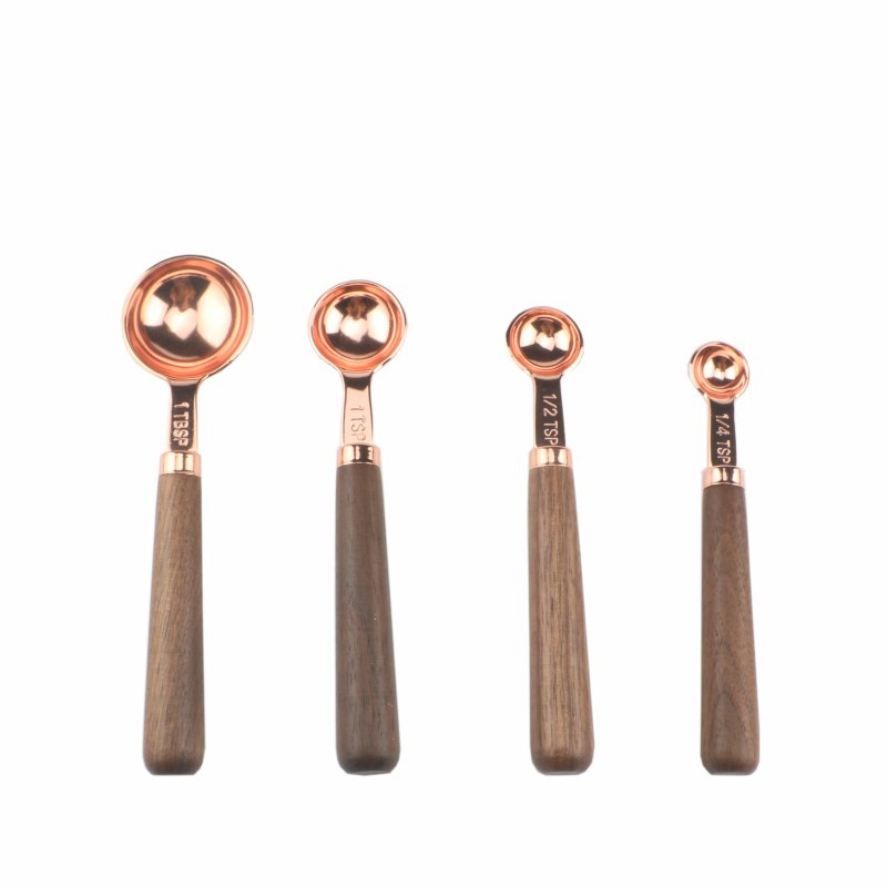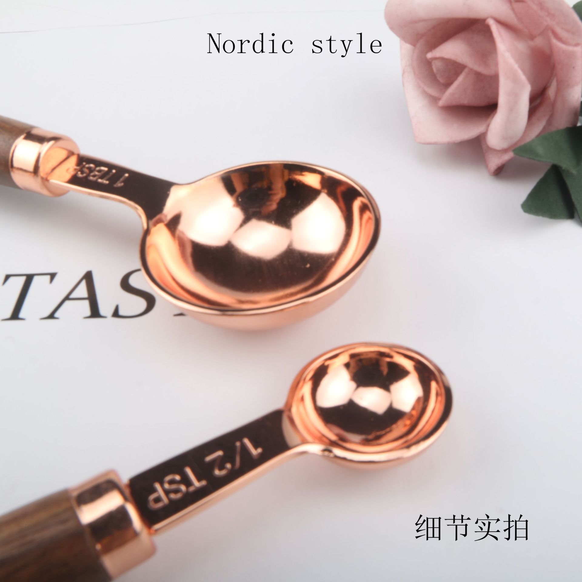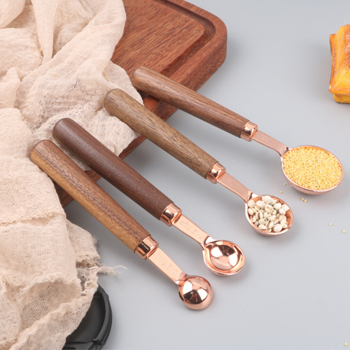 Stainless steel measuring spoon 8-piece walnut wooden handle rose gold household kitchen baking 15ML scale measuring cup spoon