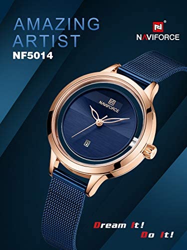 Overall, the Naviforce Women’s Blue Dial Stainless Steel Mesh Chronograph Watch – NF5014-RGBE is a must-have for any fashion-forward woman who values both style and functionality in her accessories.