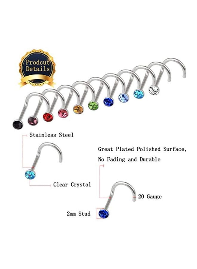 | nameOriginal | 20-Piece Stainless Steel Rhinestone Studded Nose Ring |