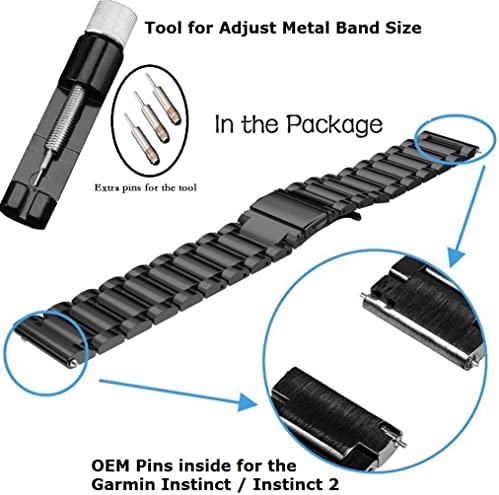 GARTOO Bands for Garmin Instinct/Instinct 2 Solar Watch Bands, Solid Stainless Steel Metal Replacement Wristband Strap Men for Garmin Instinct Tactical/Tide/Esports/Instinct Solar