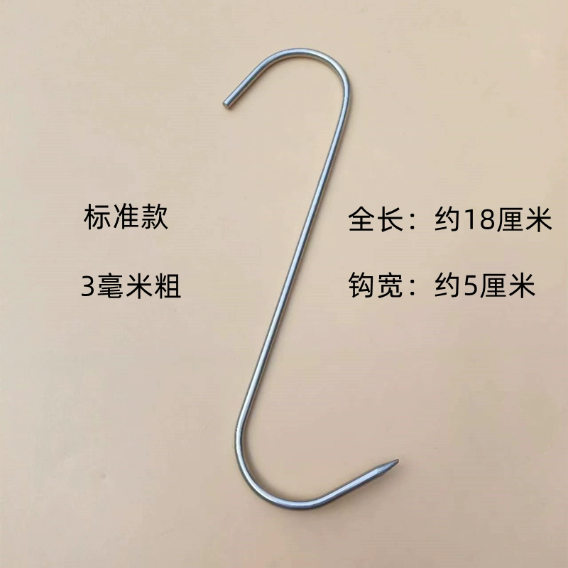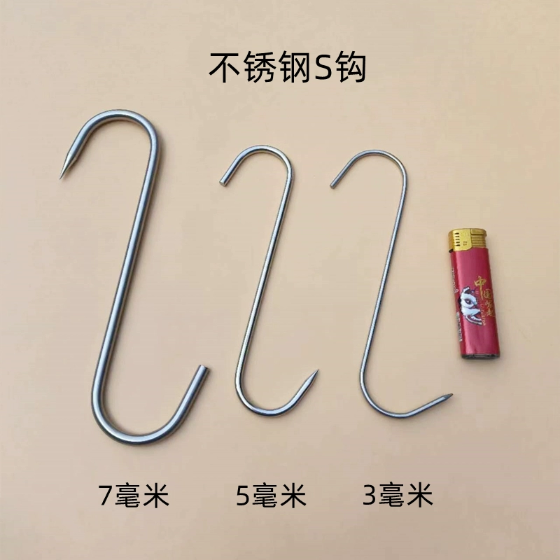 | nameOriginal | Stainless steel S-shaped double hook with ring, kitchen hook, barbecue hook, bacon hook, fishing hook, roast duck hook, S hook for hanging meat |