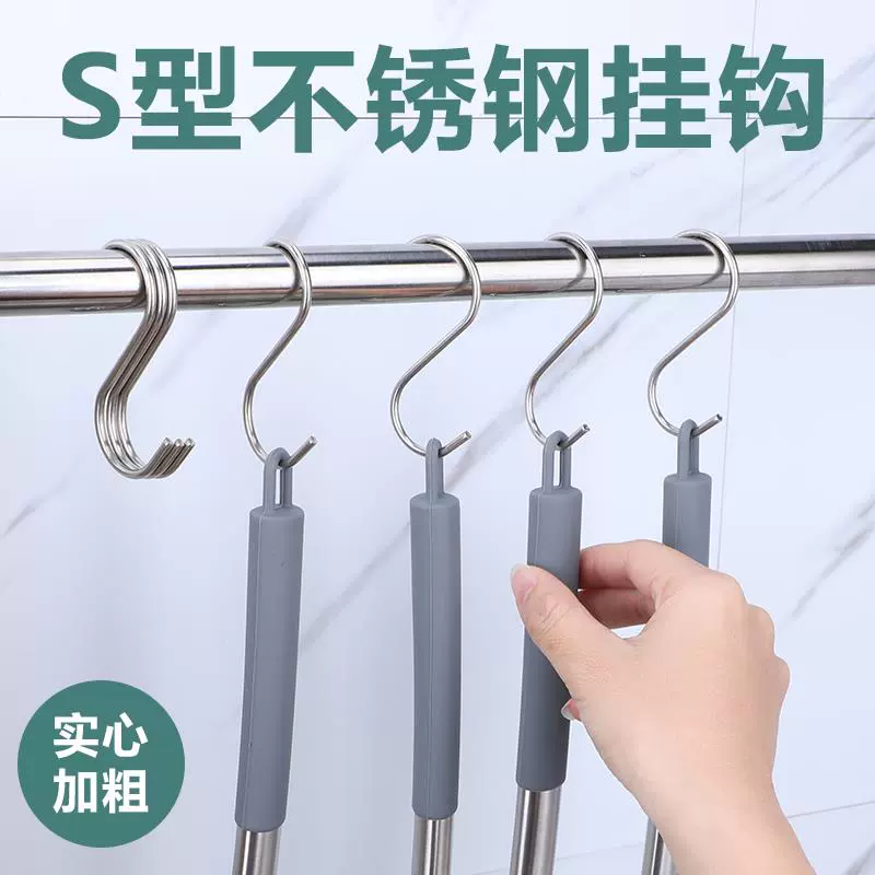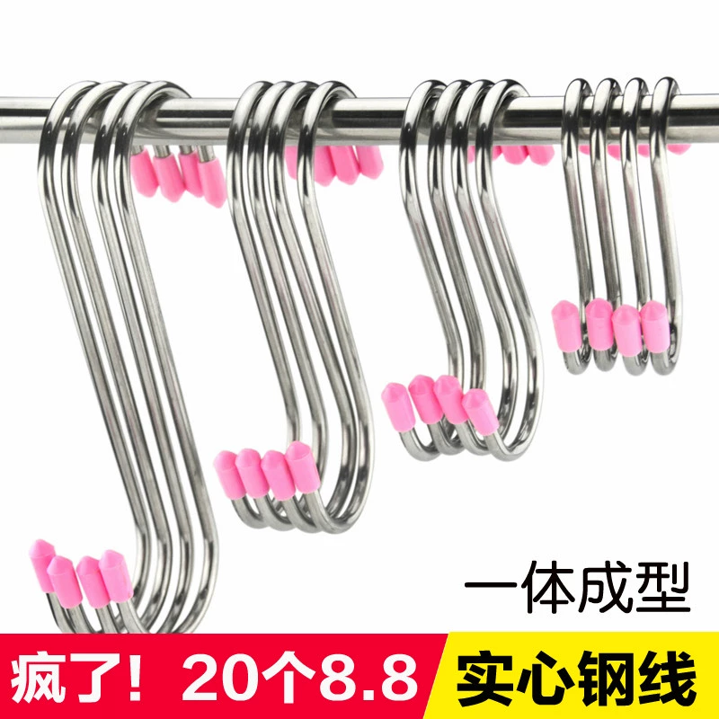 Stainless steel S-shaped hook kitchen metal iron hook bathroom S-shaped hook behind the door clothes hook large, medium and small household hook