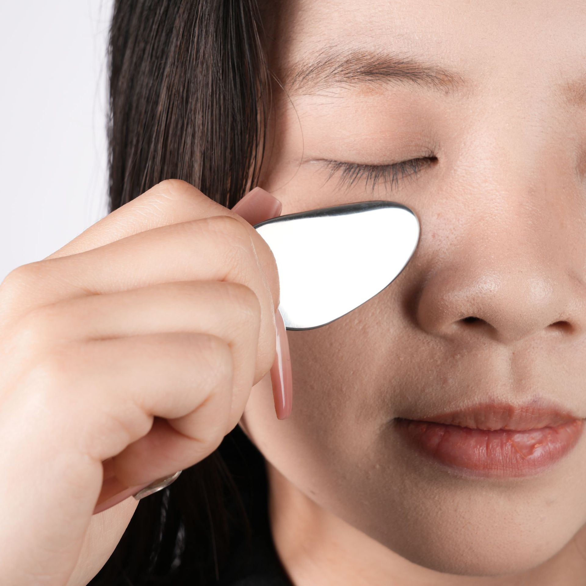 | nameOriginal | Stainless steel scraping tablet eye cold compress tablet mini face eye massager face lifting scraping board |