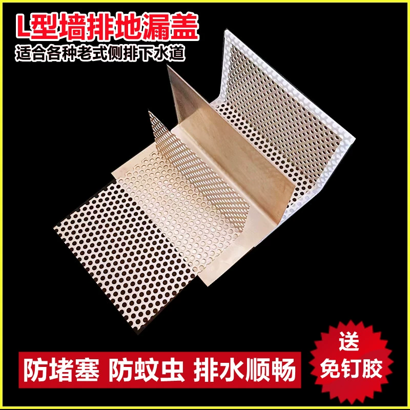 Stainless steel sewer drain on bathroom wall