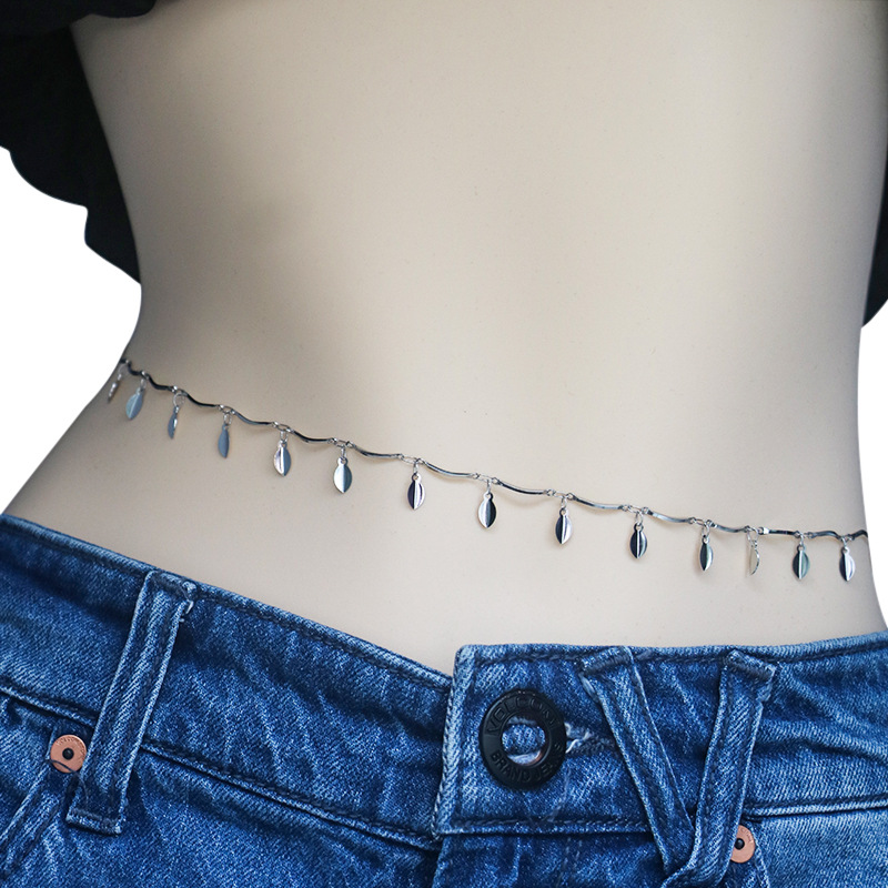 | nameOriginal | Stainless steel simple all-match elegant sexy Leaf leaves women's titanium steel tassel jewelry waist chain waist decoration body chain |