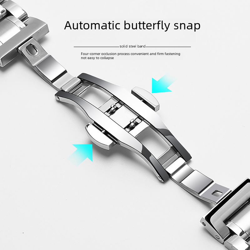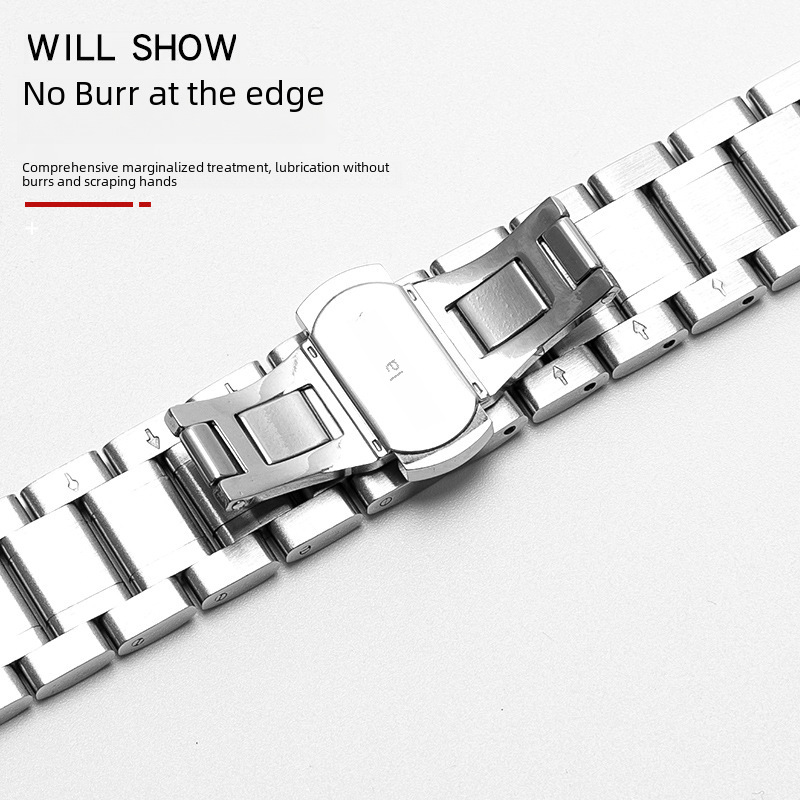| nameOriginal | Stainless Steel Strap Five Beads Solid Stainless Steel Strap Butterfly Double Snap Watch Strap Watch Accessories 20mm |