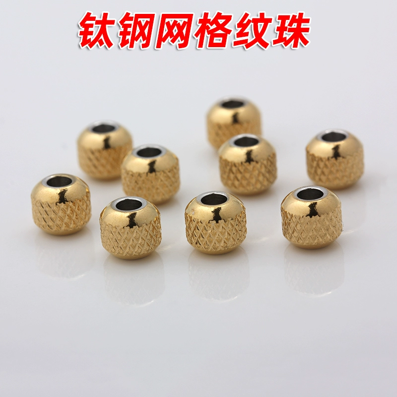 Stainless steel titanium steel plated with gold-plated grid pattern beads bracelet bracelet necklace spaced beads loose beads diy accessories