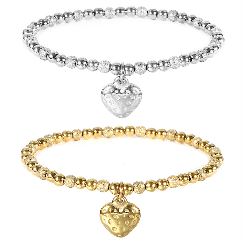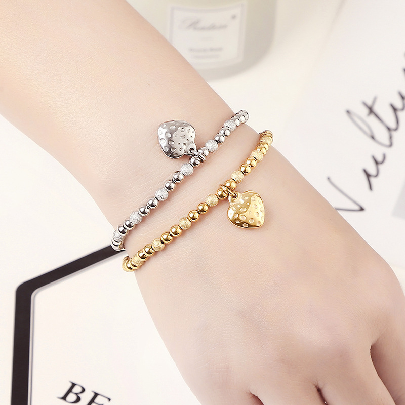 Stainless steel waterproof wear-resistant non-fading 18K gold jewelry lovers heart-shaped sand gold ball shiny beads elastic bracelet