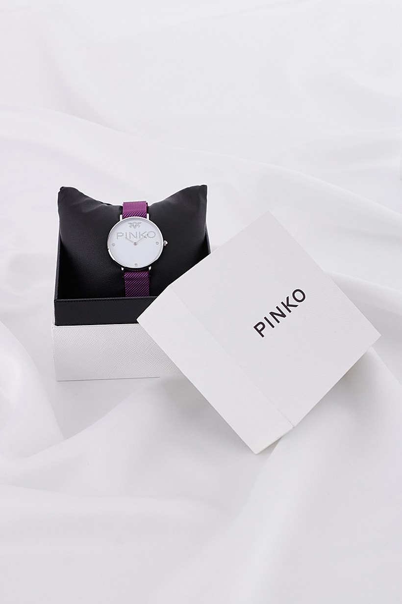 This product features a round dial shape with a glass window and analog display. It is an ideal gift for women and has a strap made of stainless steel in a beautiful purple color. The watch closure is a fold-over style and the dial color is silver. Please note that the product color may vary slightly due to lighting or monitor settings.