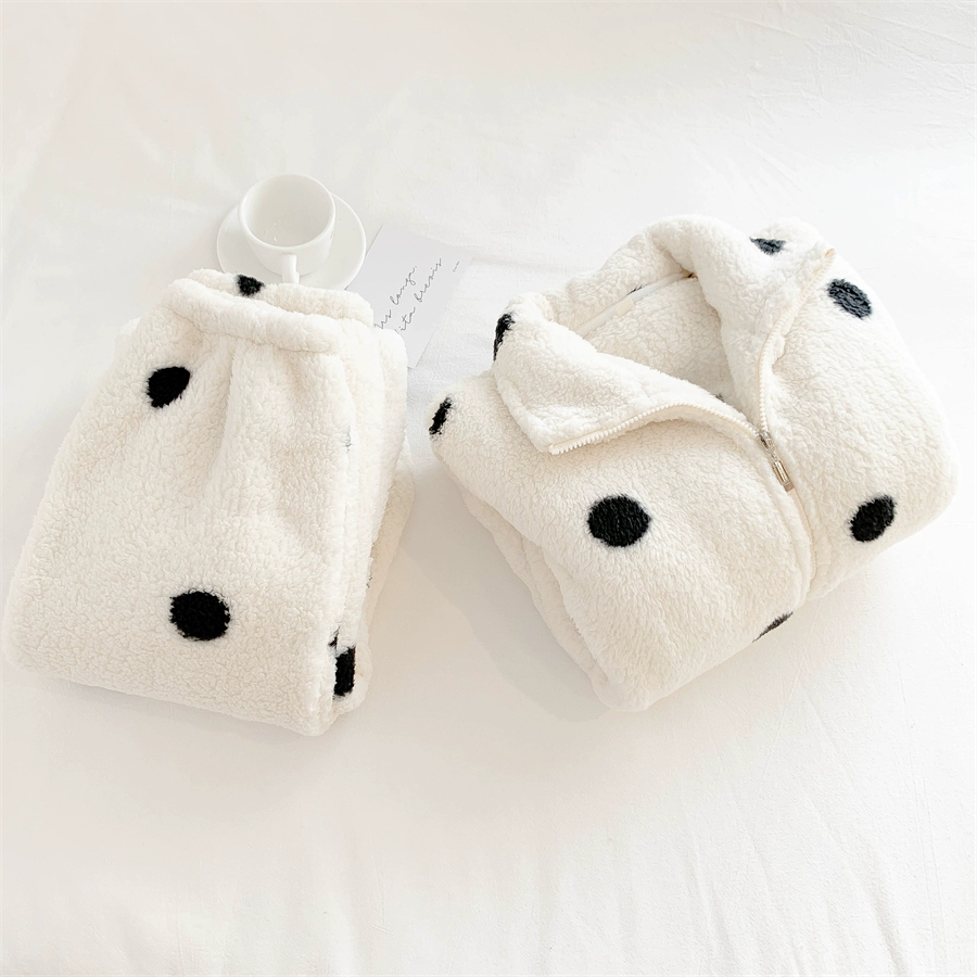 | nameOriginal | Stand collar coral velvet women's thickened white polka dot pajamas |