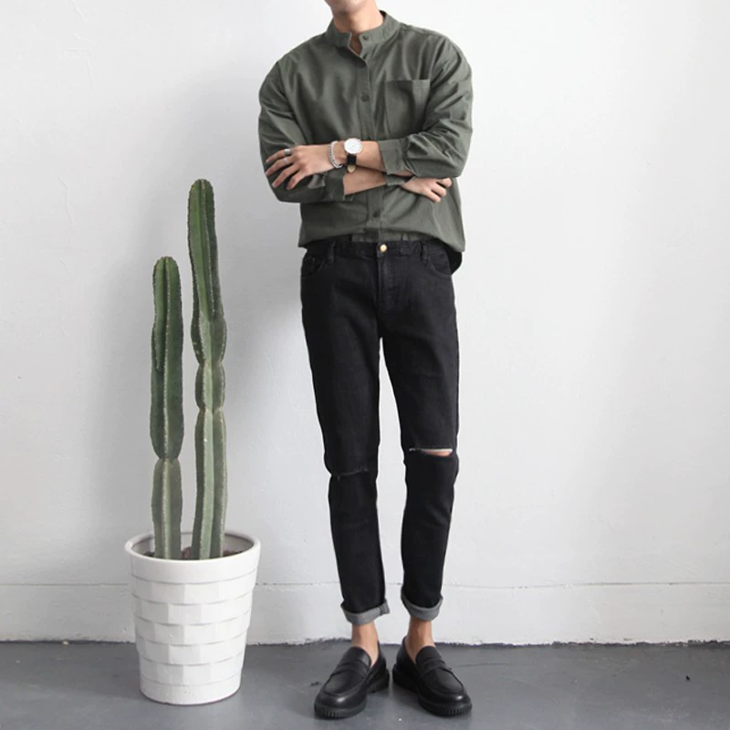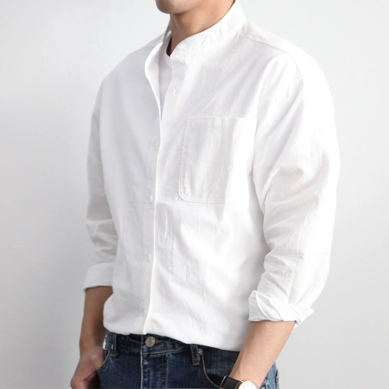 | nameOriginal | Stand collar cotton and linen casual breathable outer long-sleeved shirt |