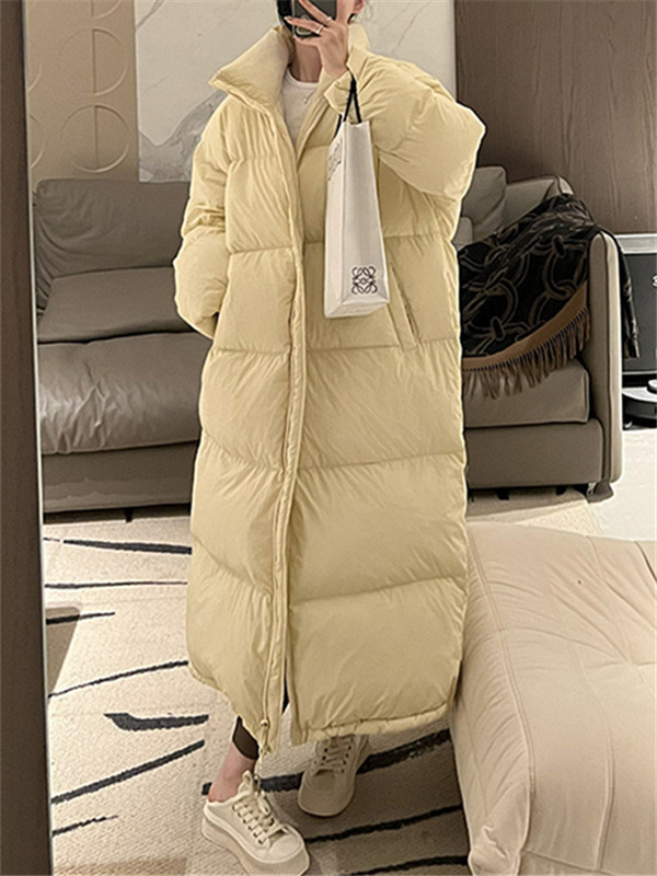 Stand Collar long white duck down jacket for women 2023 Winter New loose fashion large quilt warm over-the-knee coat