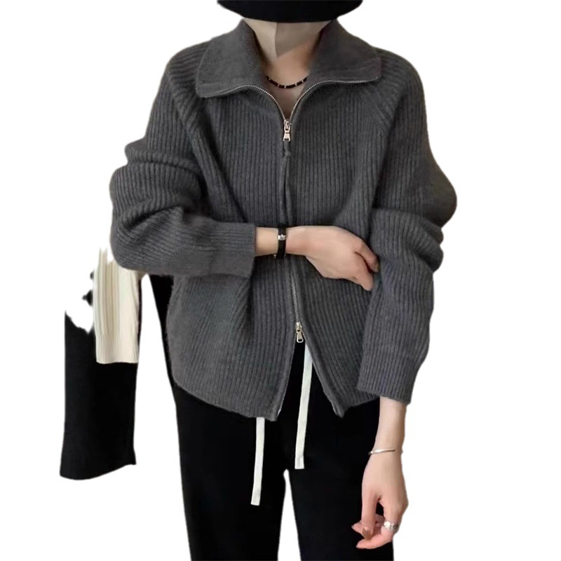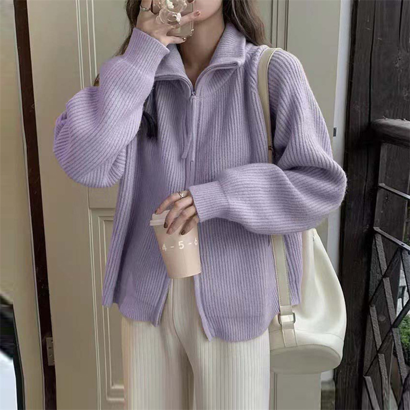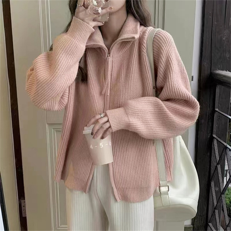 | nameOriginal | Stand Collar pit double-headed zipper knitted cardigan top trendy autumn and winter New soft glutinous slimming sweater coat for women |