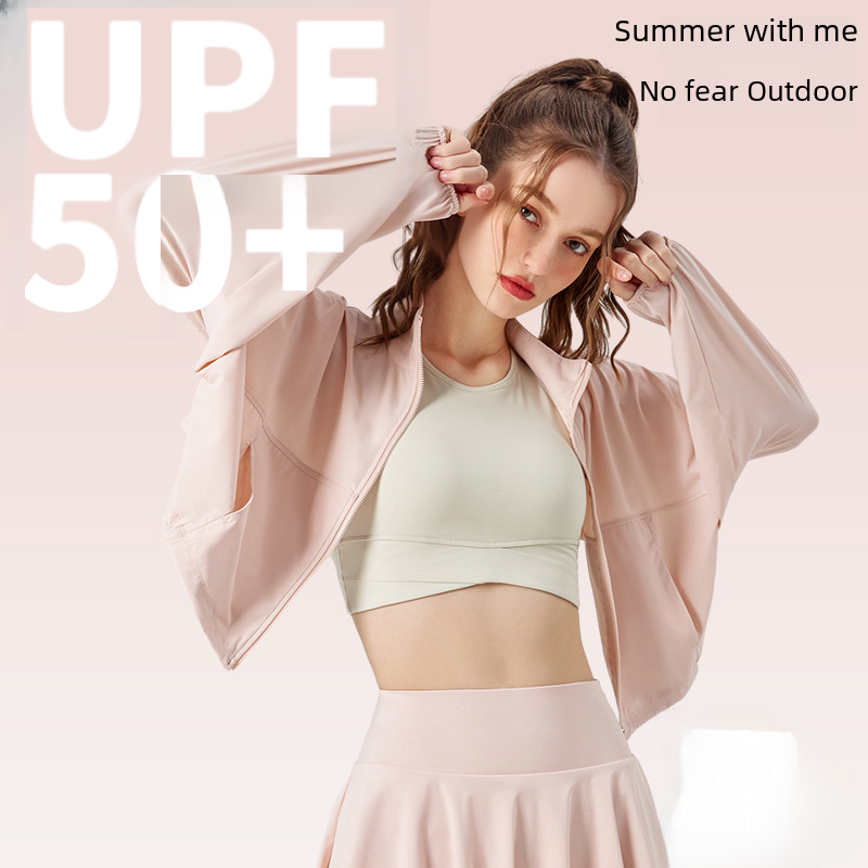 Stand Collar pocket cool sun protection clothing UV protection women’s outdoor sports fitness jacket loose breathable casual top