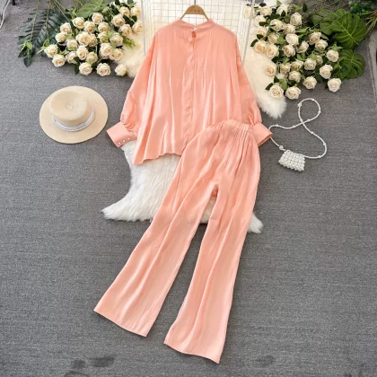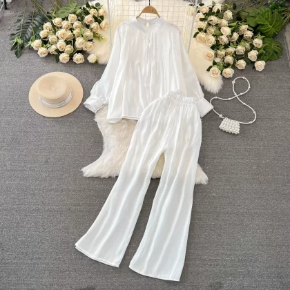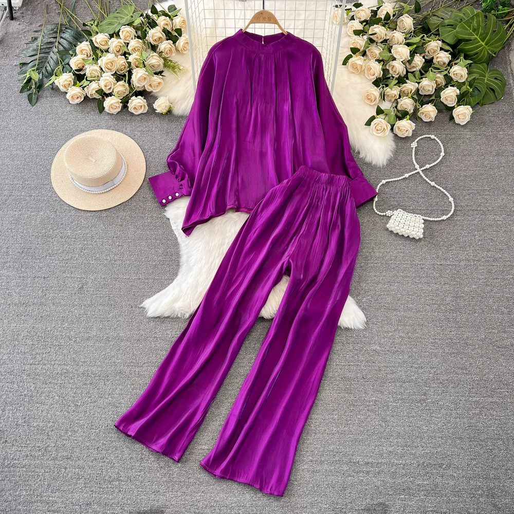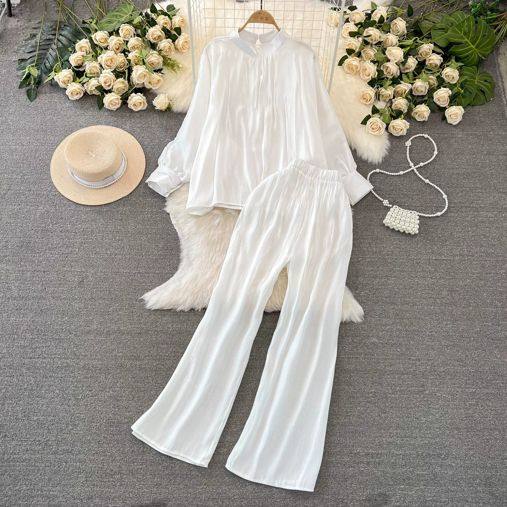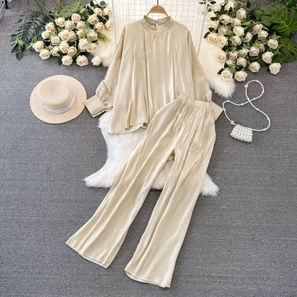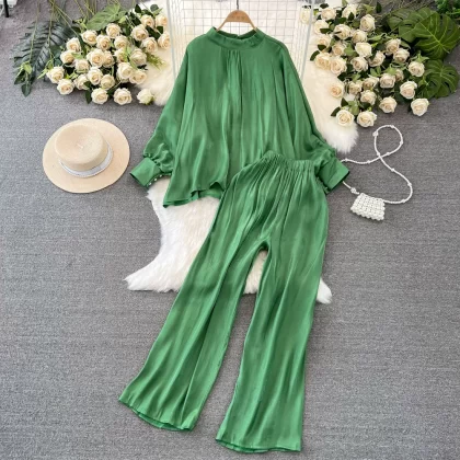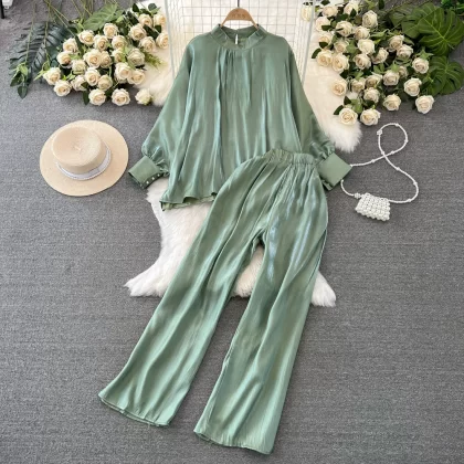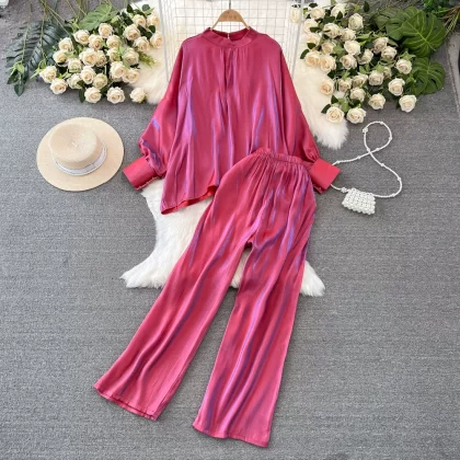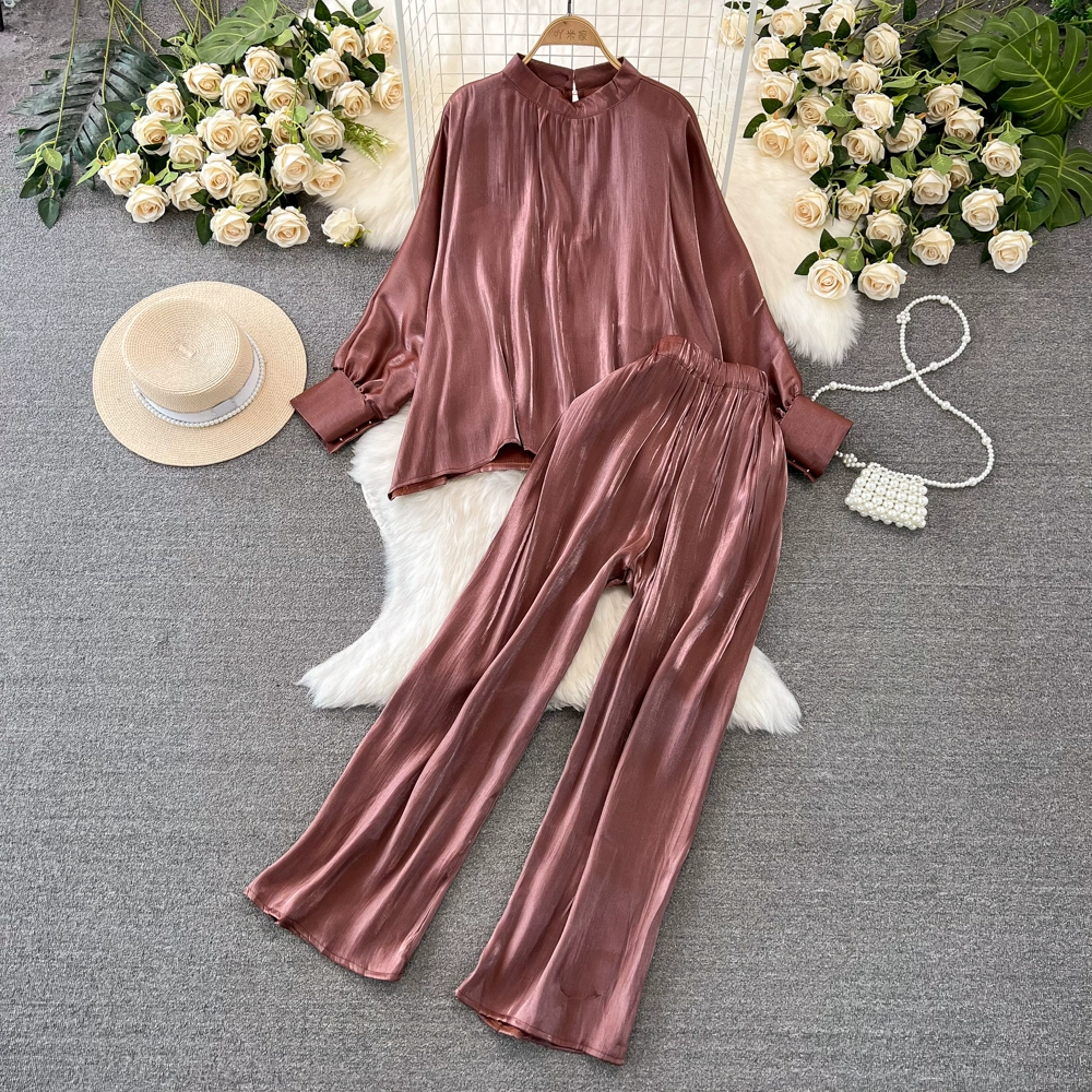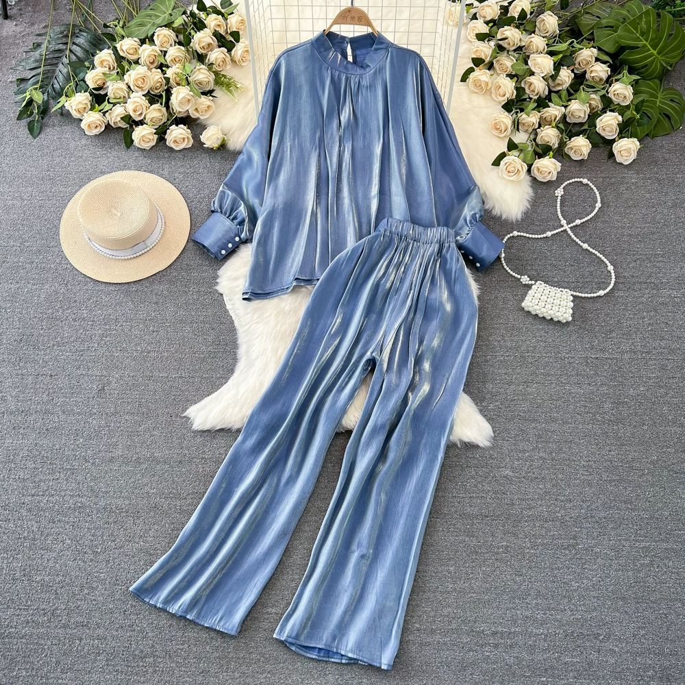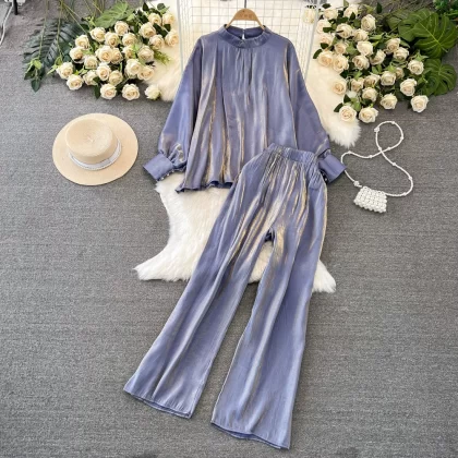 Stand collar shiny casual high waist slimming fashion suit