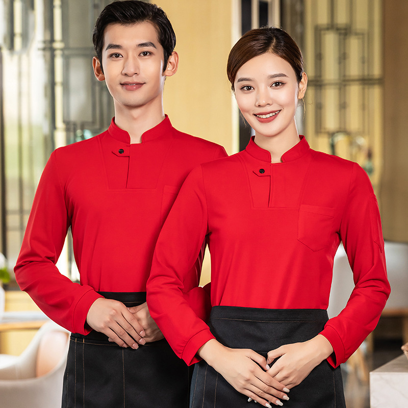| nameOriginal | Stand collar sweater spot logo catering waiter work clothes long sleeve men's and women's autumn and winter enterprise group plus velvet coat |
