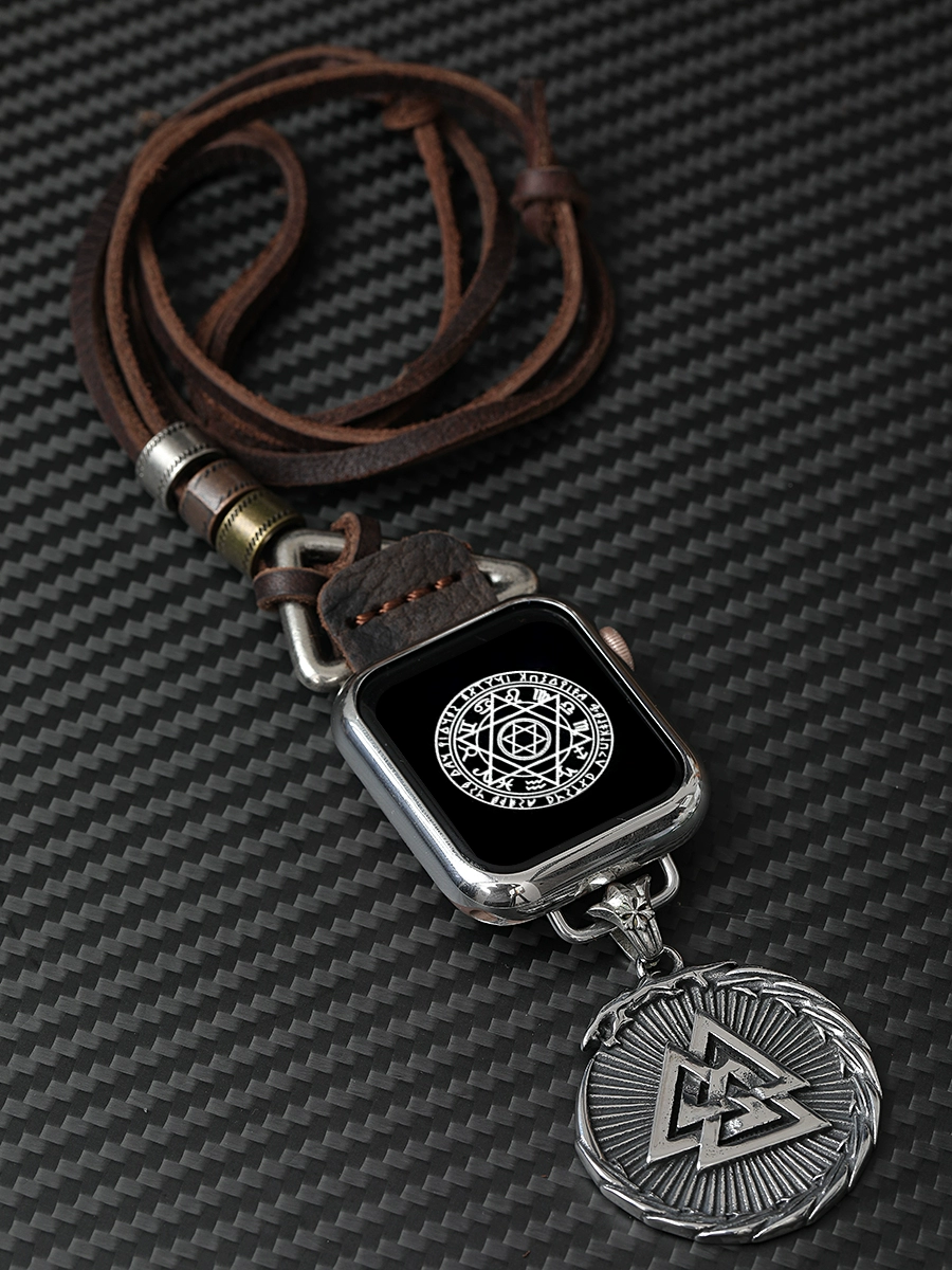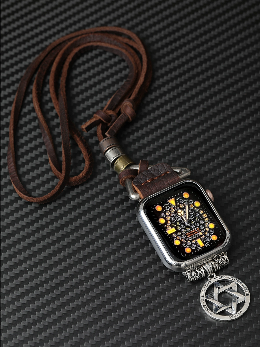 Star map suitable for iwatch1234567s8se9 Apple watch with applewatch45 lanyard necklace genuine leather sweater chain titanium steel 44mm38 membrane shell integrated protective cover 41ultra49