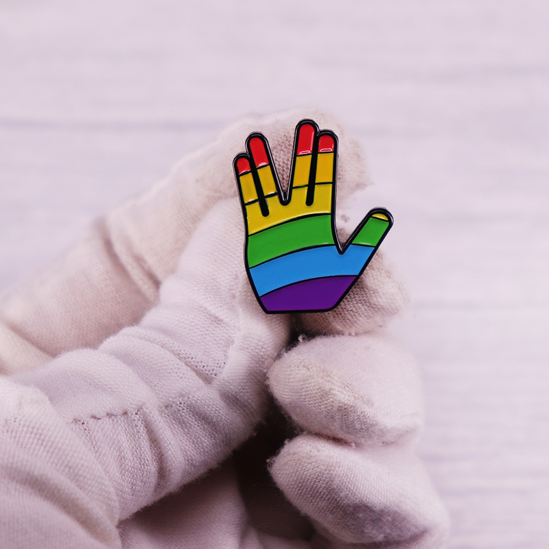 | nameOriginal | Star Trek Rainbow Gesture Vulcan Hand Raising Ceremony Brooch Clothes Hat Pin Metal Accessories Gift |