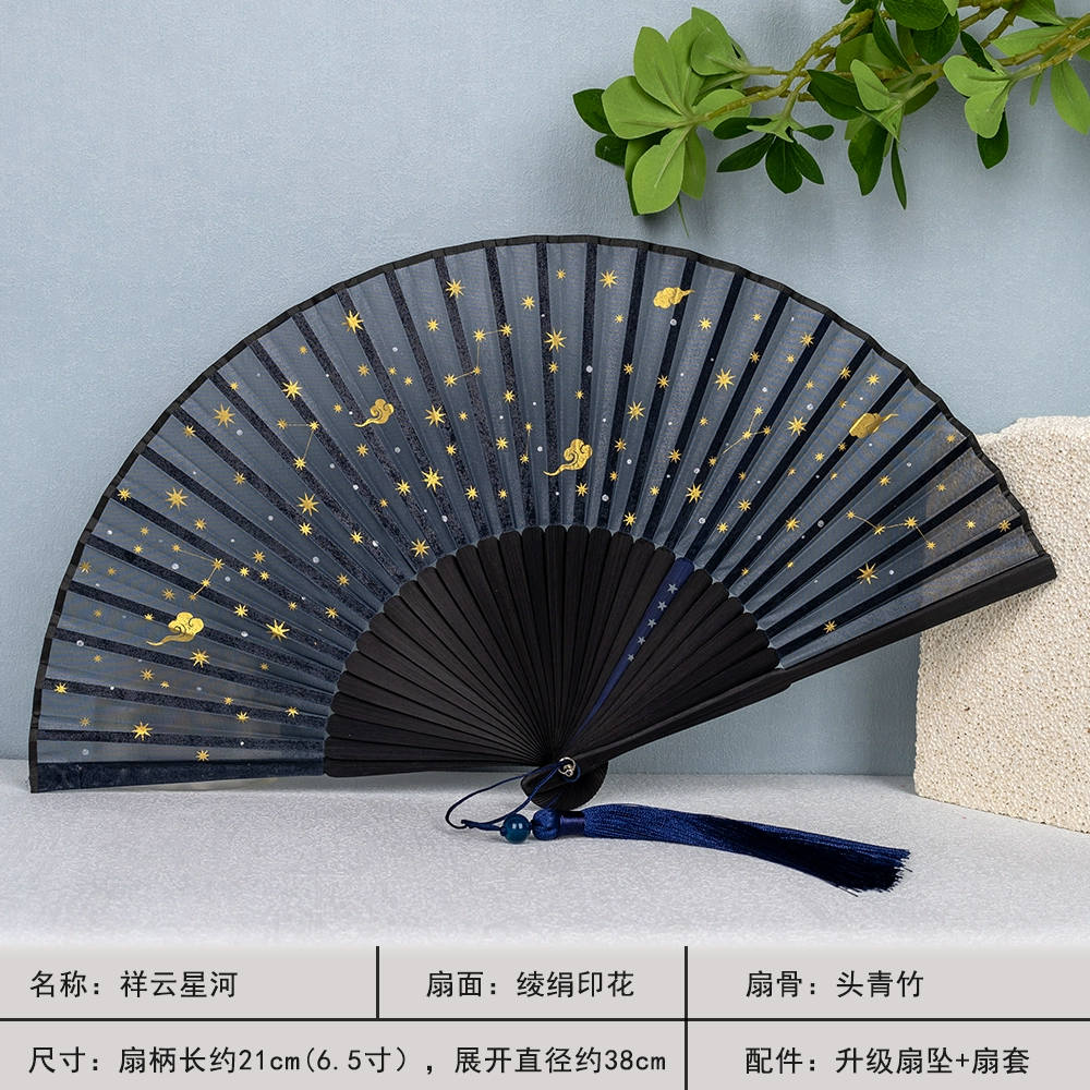 | nameOriginal | Starry sky folding fan Chinese style women's portable fan summer portable folding fan ancient style bronzing ancient Hanfu bamboo fan |