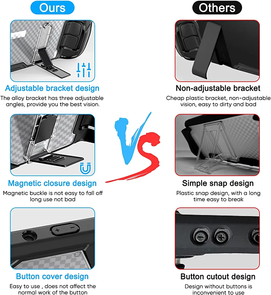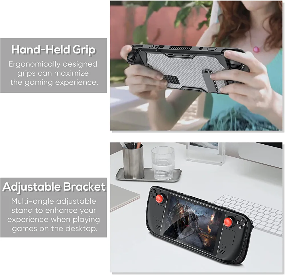 Additionally, the case has air vents on the back and top, which effectively solve the heat dissipation problem and prevent overheating. Overall, this set of accessories is designed with ergonomics in mind and provides a comfortable and secure gaming experience for Steam Deck users.
