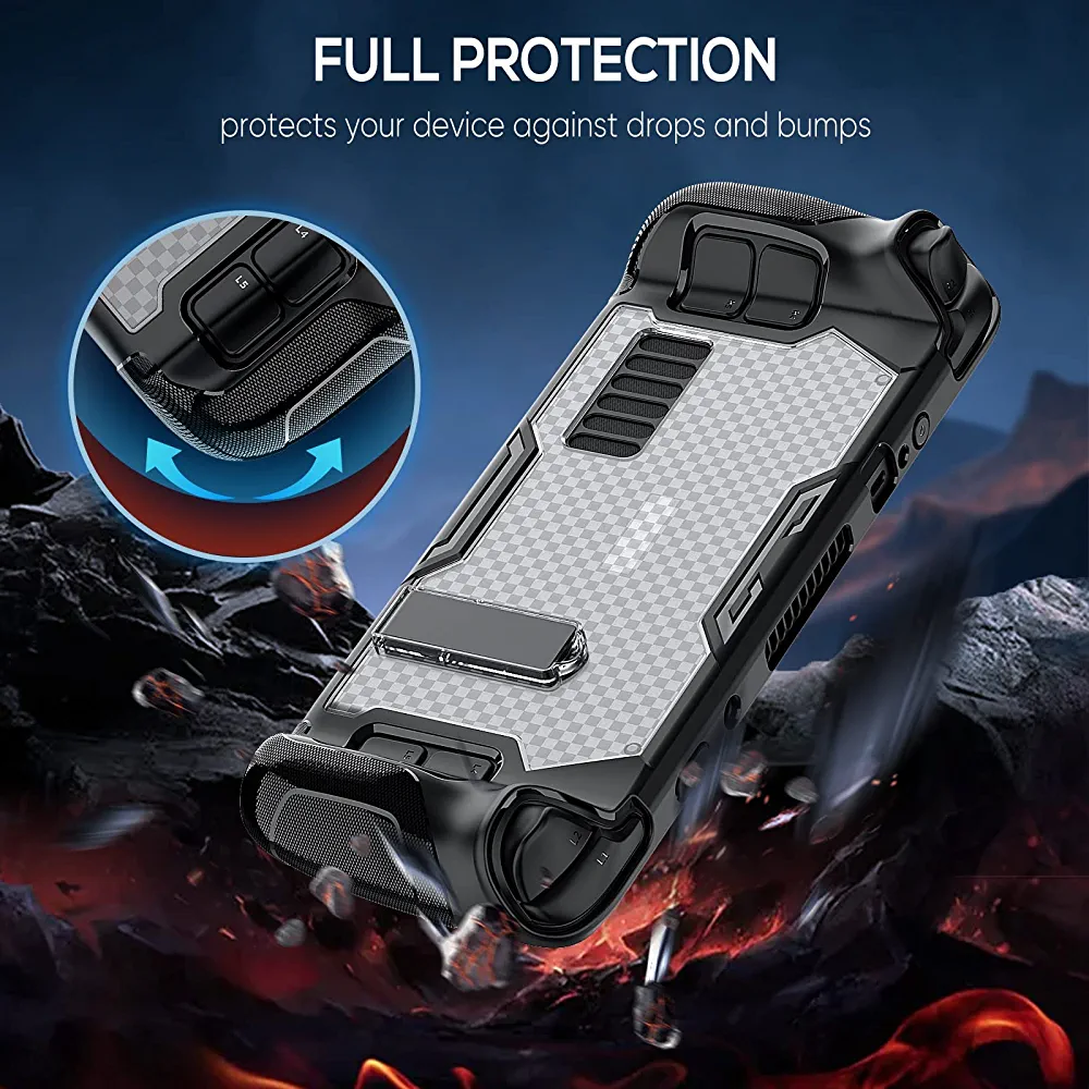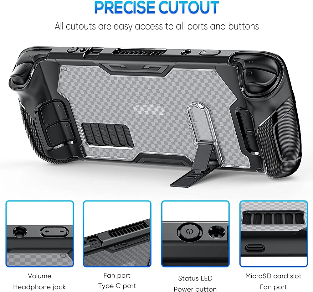 The case is precisely cut to fit the Steam Deck, allowing easy access to all features and controls. It also has a non-slip bump texture on two sides, which prevents the device from sliding around and enhances grip-ability for a better hand feeling and gaming experience.