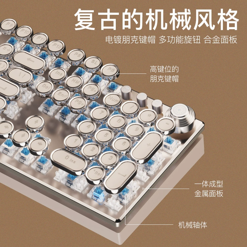 | nameOriginal | Steampunk real mechanical keyboard and mouse set blue axis desktop computer game dedicated to retro office girls |