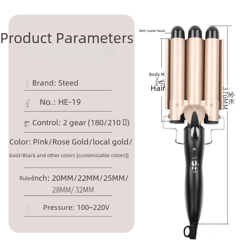 | nameOriginal | Steed horse electric curling rod egg curling rod bubble noodle head three tube curling iron water ripple small curling iron big curling iron splint |