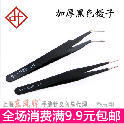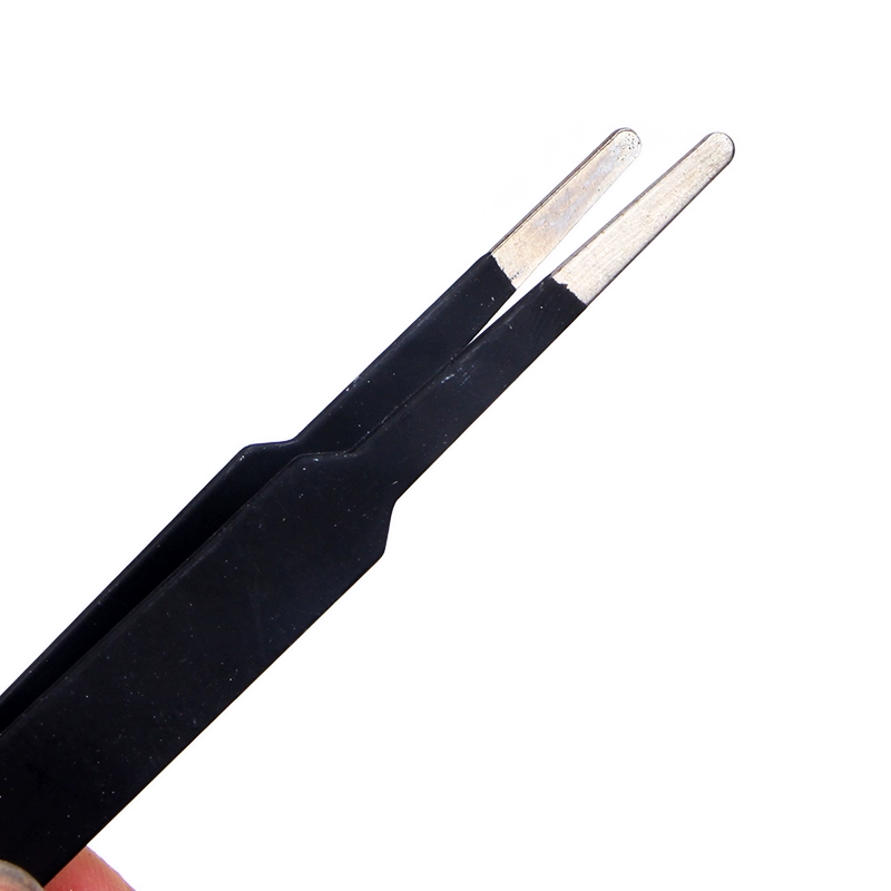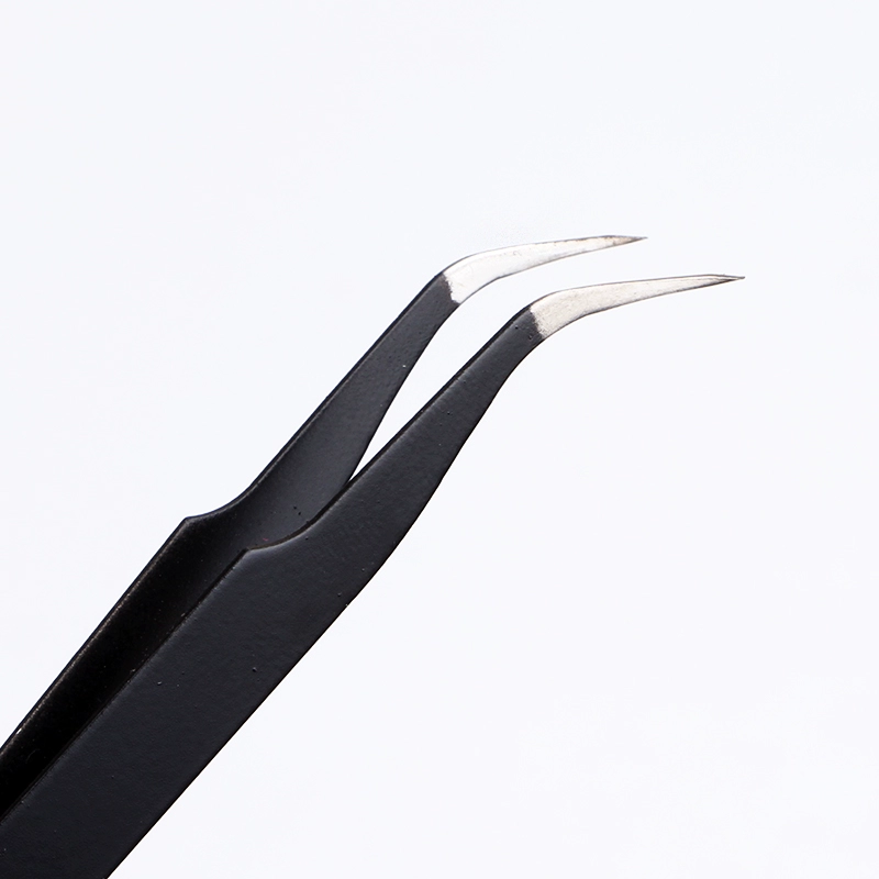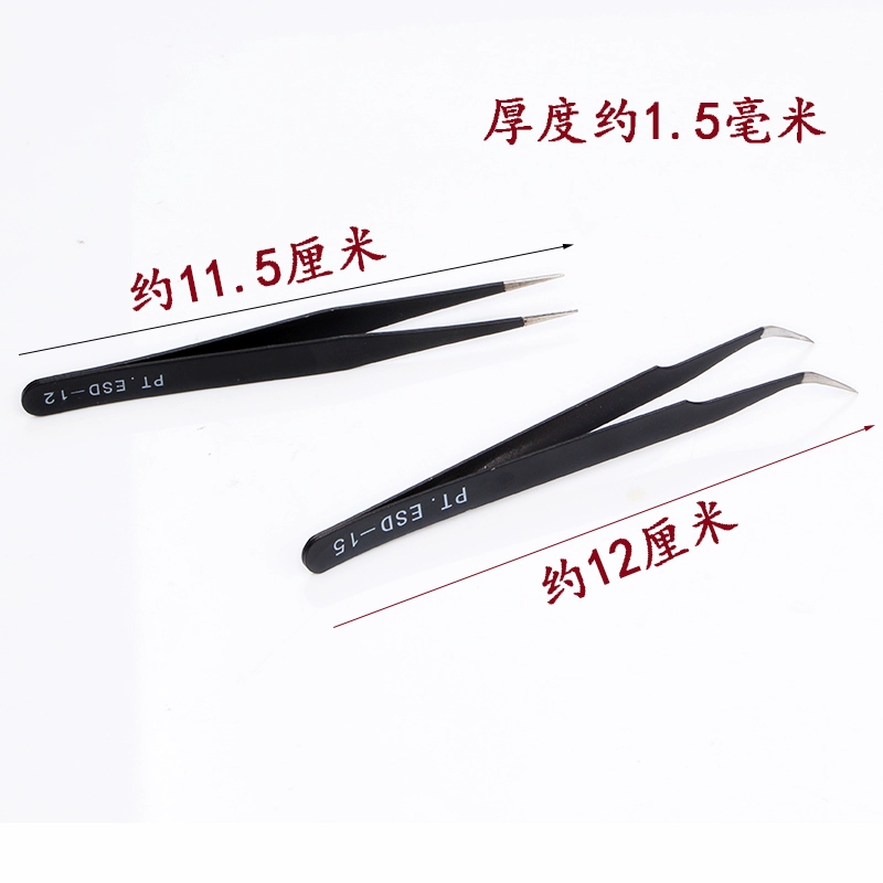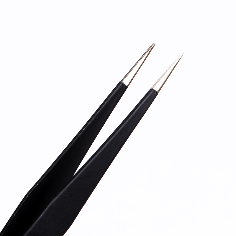 Steel carbon tweezers Anti-static black thin style pointed bent mouth household medical home repair manicure hair picking